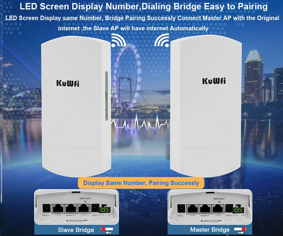 Este es un puente CPE inalámbrico para exteriores de alta potencia y alto rendimiento 5,8G 11a/N 300Mbps. Adopta el chipset Qualcomm AR9344, PA externo y antena direccional de alta ganancia de 12dBi, admite una distancia de transmisión de hasta 3km. Con pantalla LED e interruptor de palanca de modo AP/cliente para un fácil emparejamiento sin entrar en la interfaz de usuario web. Puerto de red múltiple y diseño de dos salidas de CC: se puede conectar con varias cámaras, eliminando el interruptor, y también con dos tomas de salida de CC para suministrar energía a las cámaras, eliminando dos adaptadores de corriente. Es ideal para la transmisión de datos de cámaras CCTV/IP por su transmisión de datos inalámbrica estable y múltiples funciones.