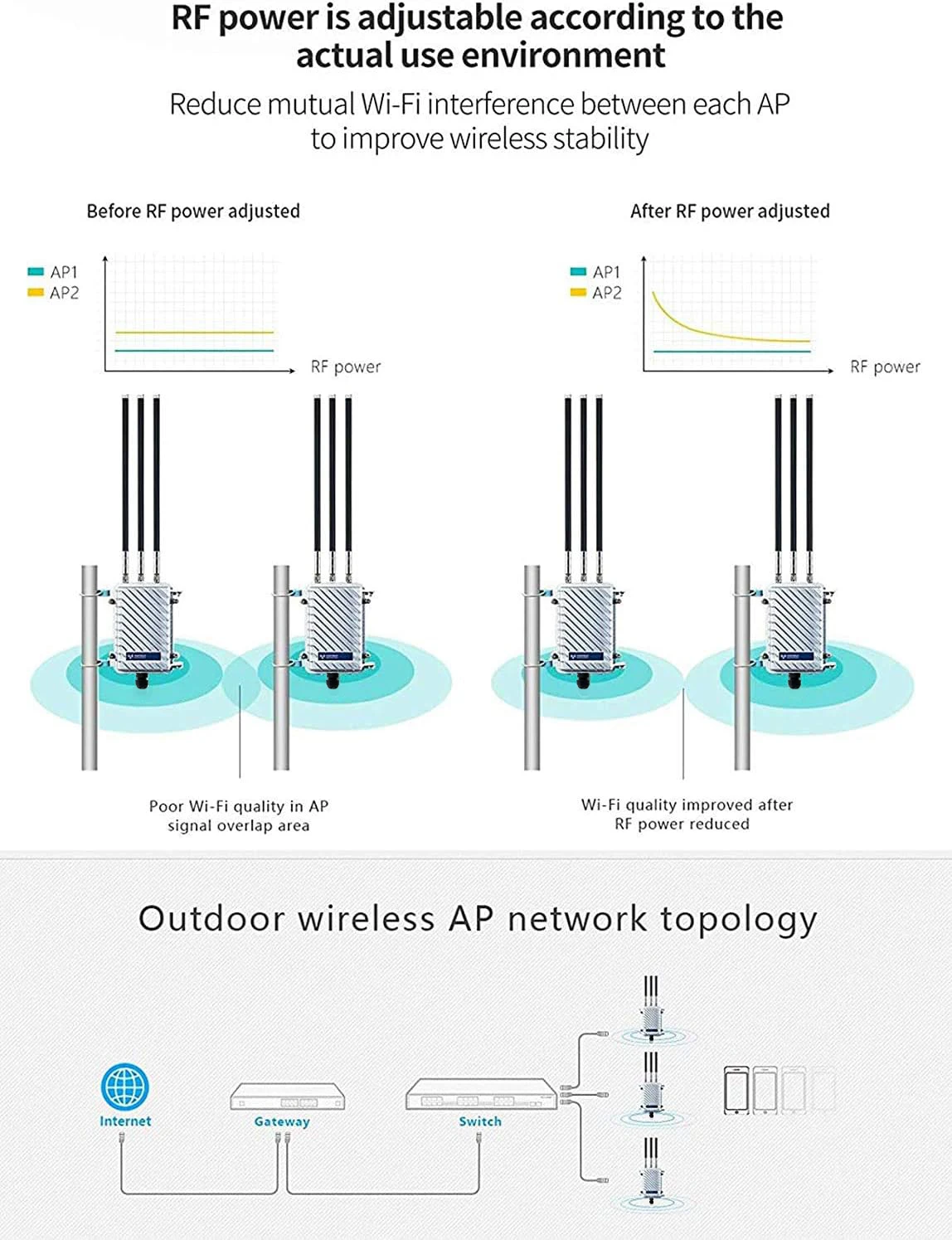 5.Support full frequency and more than 200 channels if need, to avoid the Wi-Fi Interference, guarantee the stable wireless connection. Meantime, it support Power over Ethernet, support IEEE 802.3af PoE, 48V, easy in setup even no power socket nearby