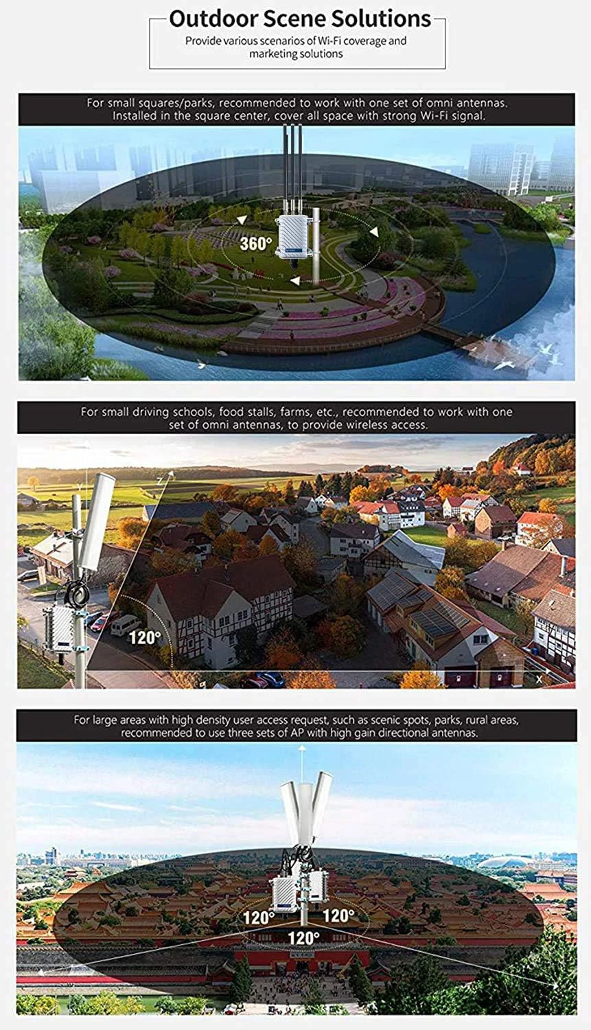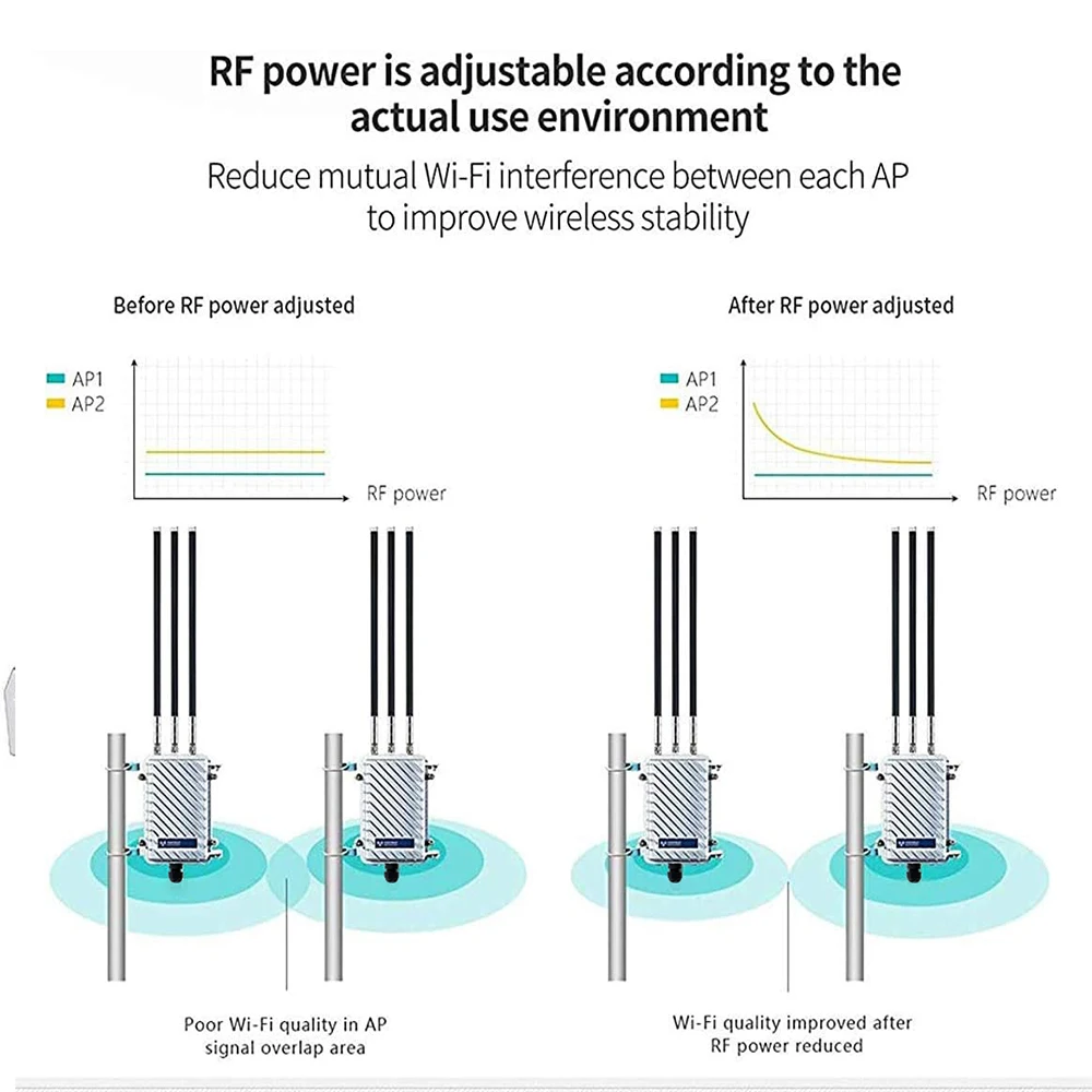 Comprar KuWFi-puente inalámbrico para exteriores, punto de acceso WiFi, repetidor inalámbrico de 750Mbps, antenas Wifi 2,4G y 5,8G, estación Base impermeable AP