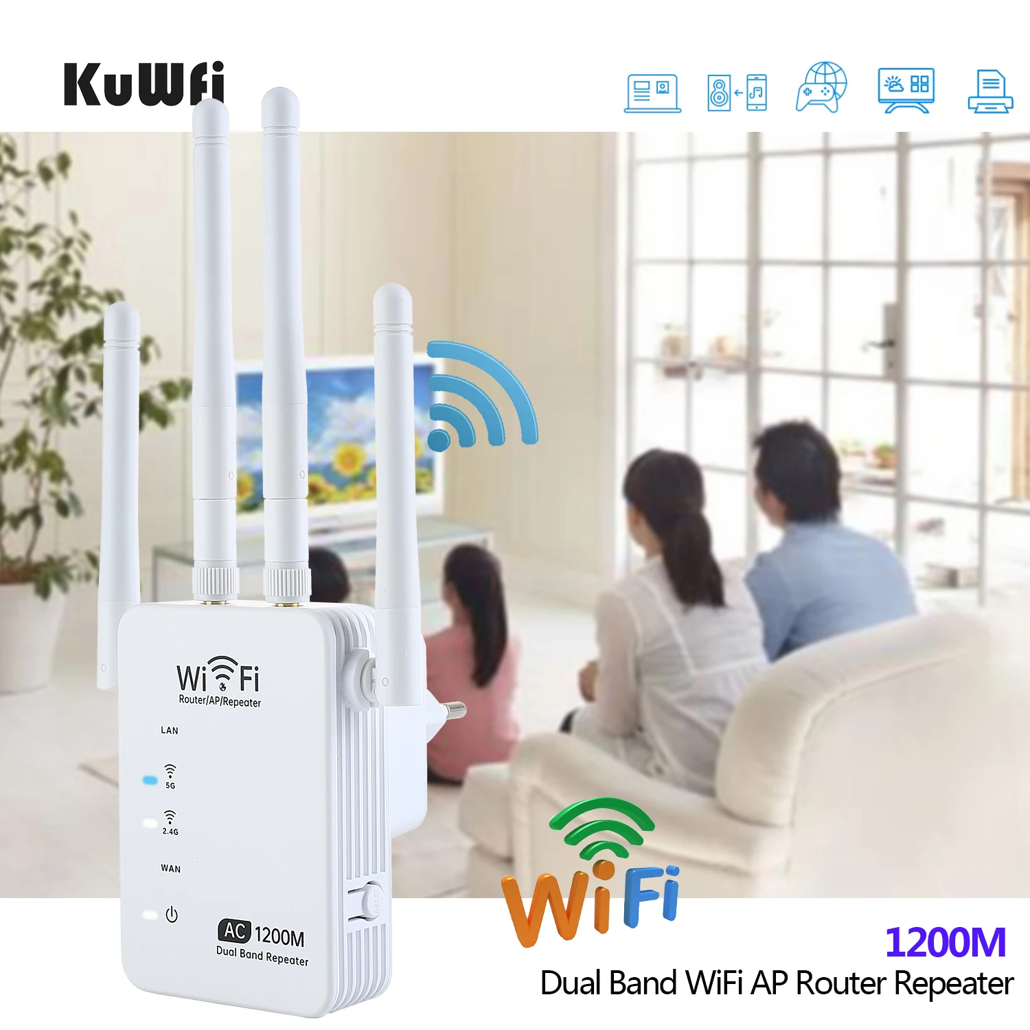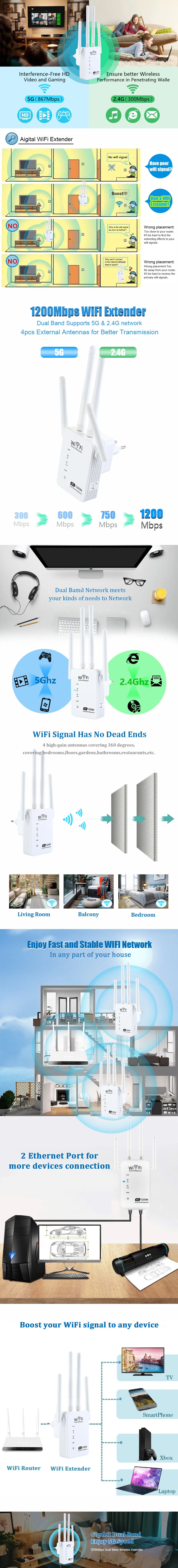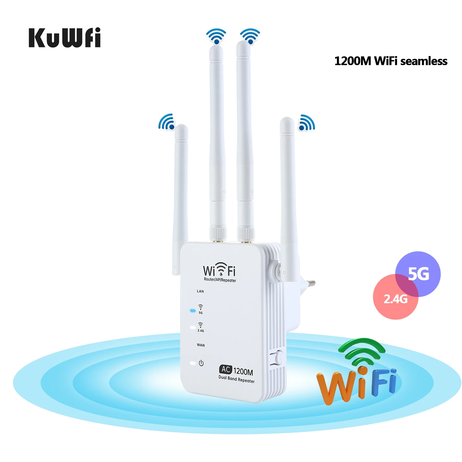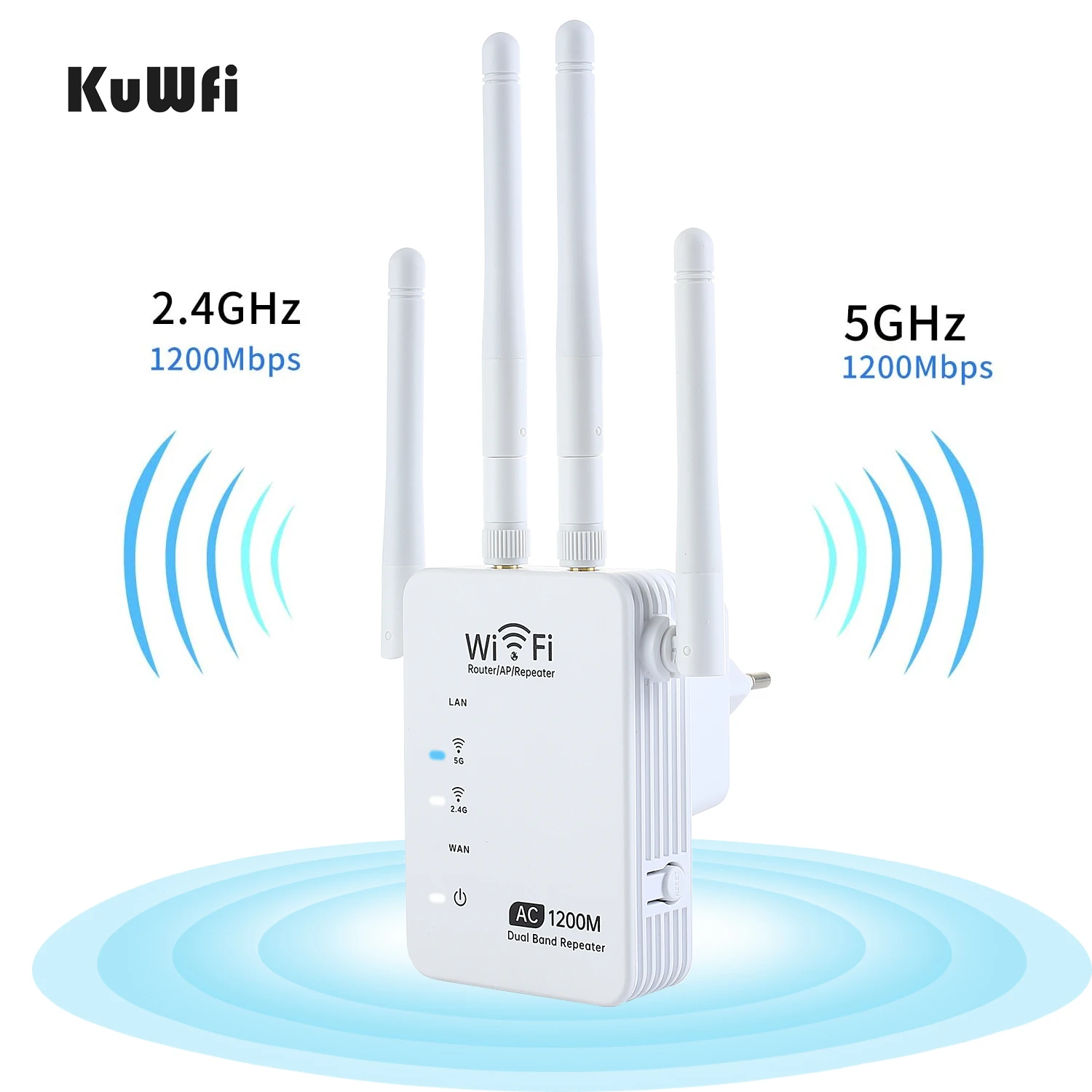 Comprar KuWfi-repetidor Wifi 5G de doble banda, enrutador AP de 1200Mbps, amplificador de señal Wifi, extensor inalámbrico de Wi-Fi, amplificador de señal de largo alcance
