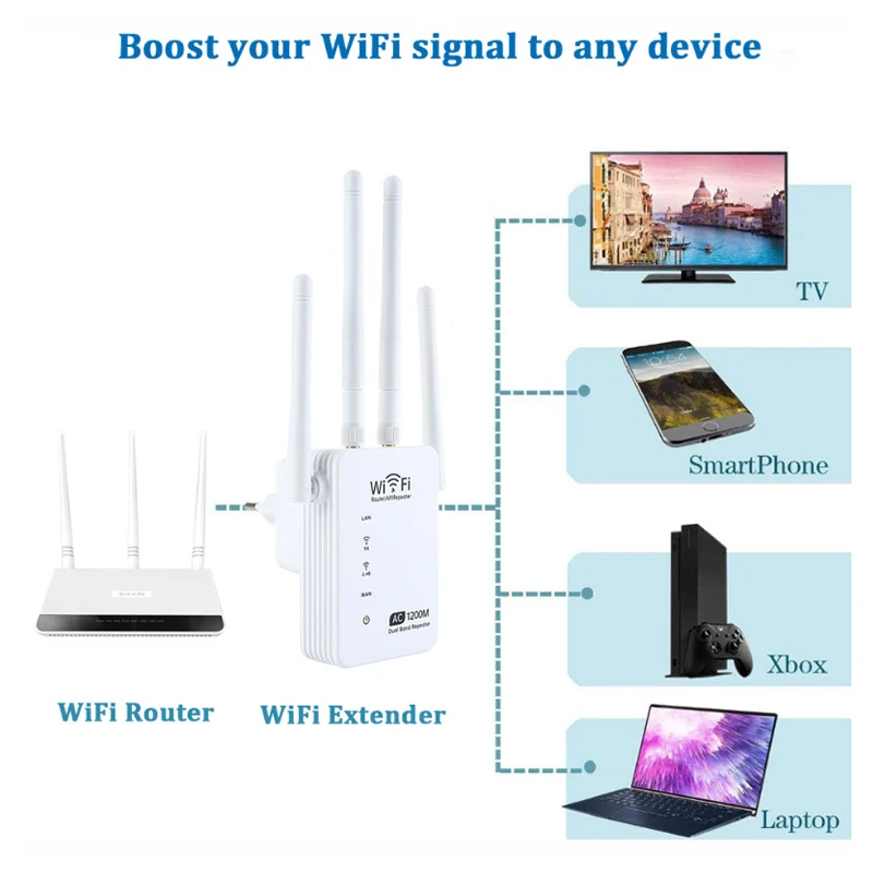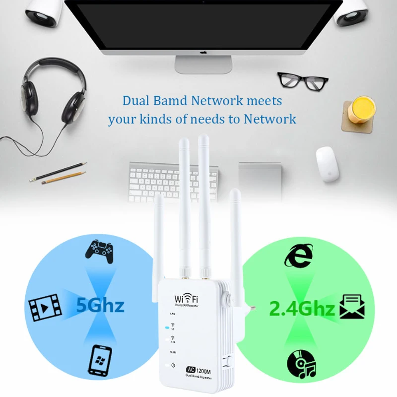 Comprar KuWfi-repetidor Wifi 5G de doble banda, enrutador AP de 1200Mbps, amplificador de señal Wifi, extensor inalámbrico de Wi-Fi, amplificador de señal de largo alcance
