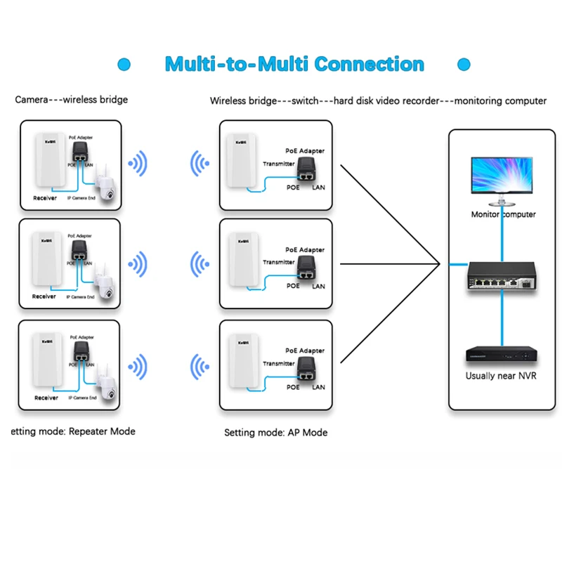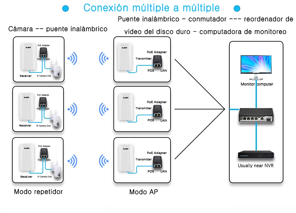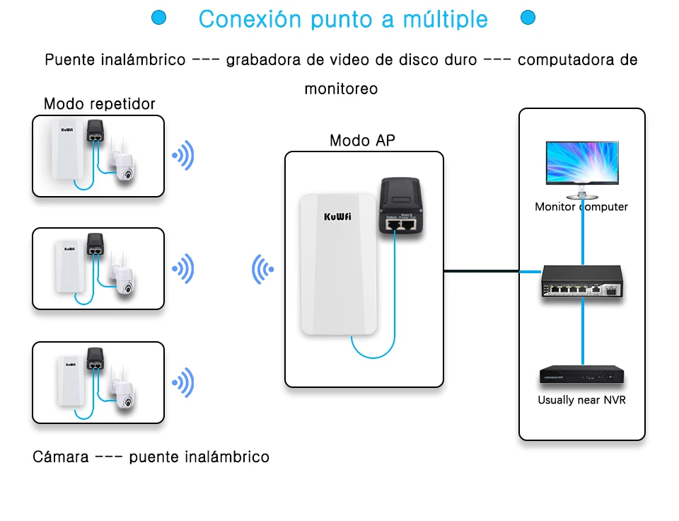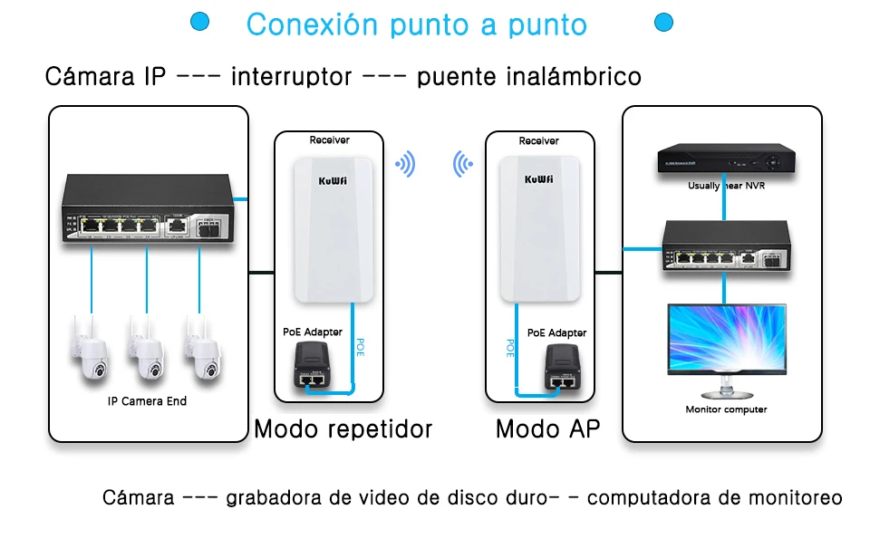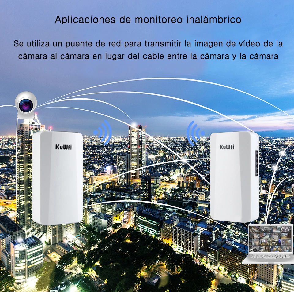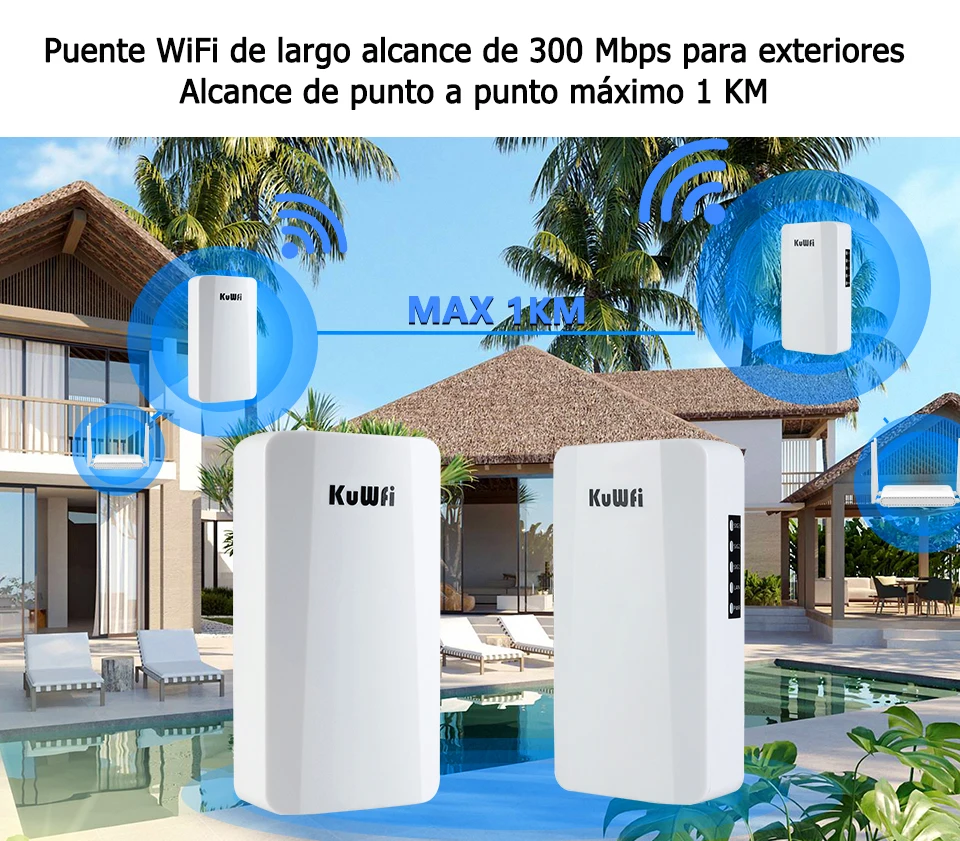 Router KuWFi para exteriores, puente Wifi inalámbrico de 300Mbps para exteriores P2P, puente WIFI inalámbrico de 1KM con adaptador POE de 24V para cámara IPTenga en cuenta: este puente no tiene wifi ssid, no admite cobertura wifi, es solo un puente wifi inalámbrico, ¡Gracias!