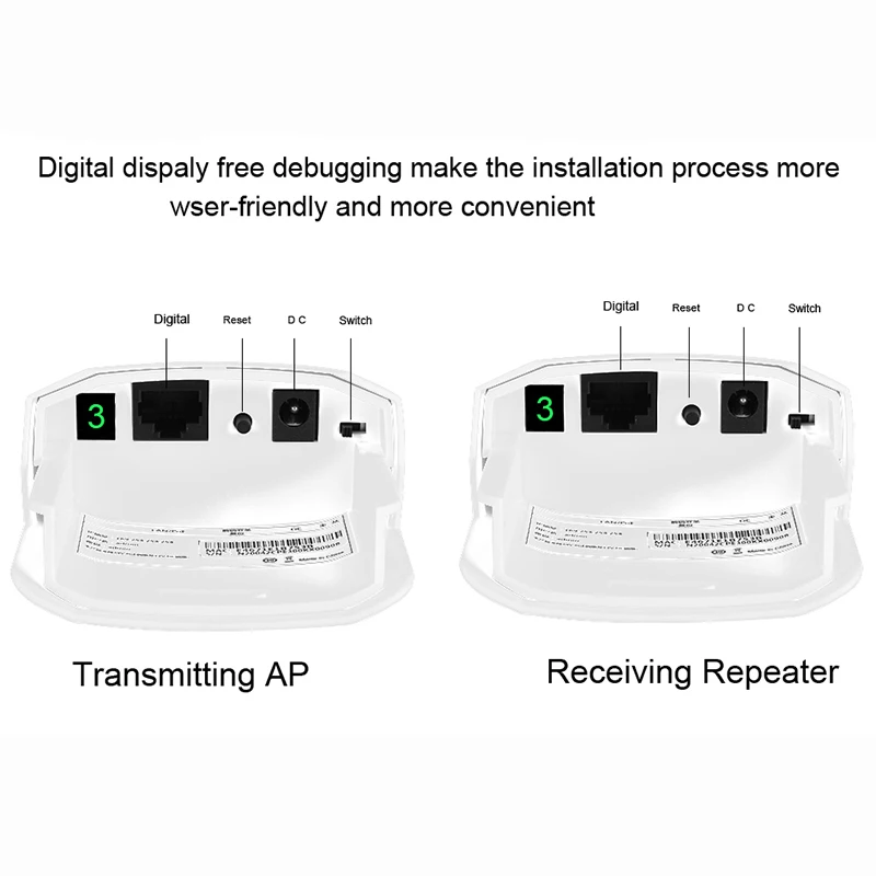 5.Ethernet Bridge admite información de emparejamiento de pantalla digital para emparejamiento remoto KuWFi Outdoor AP dos unidades funcionan al mismo tiempo y el LED muestra el mismo NO digital, lo que significa tener par.