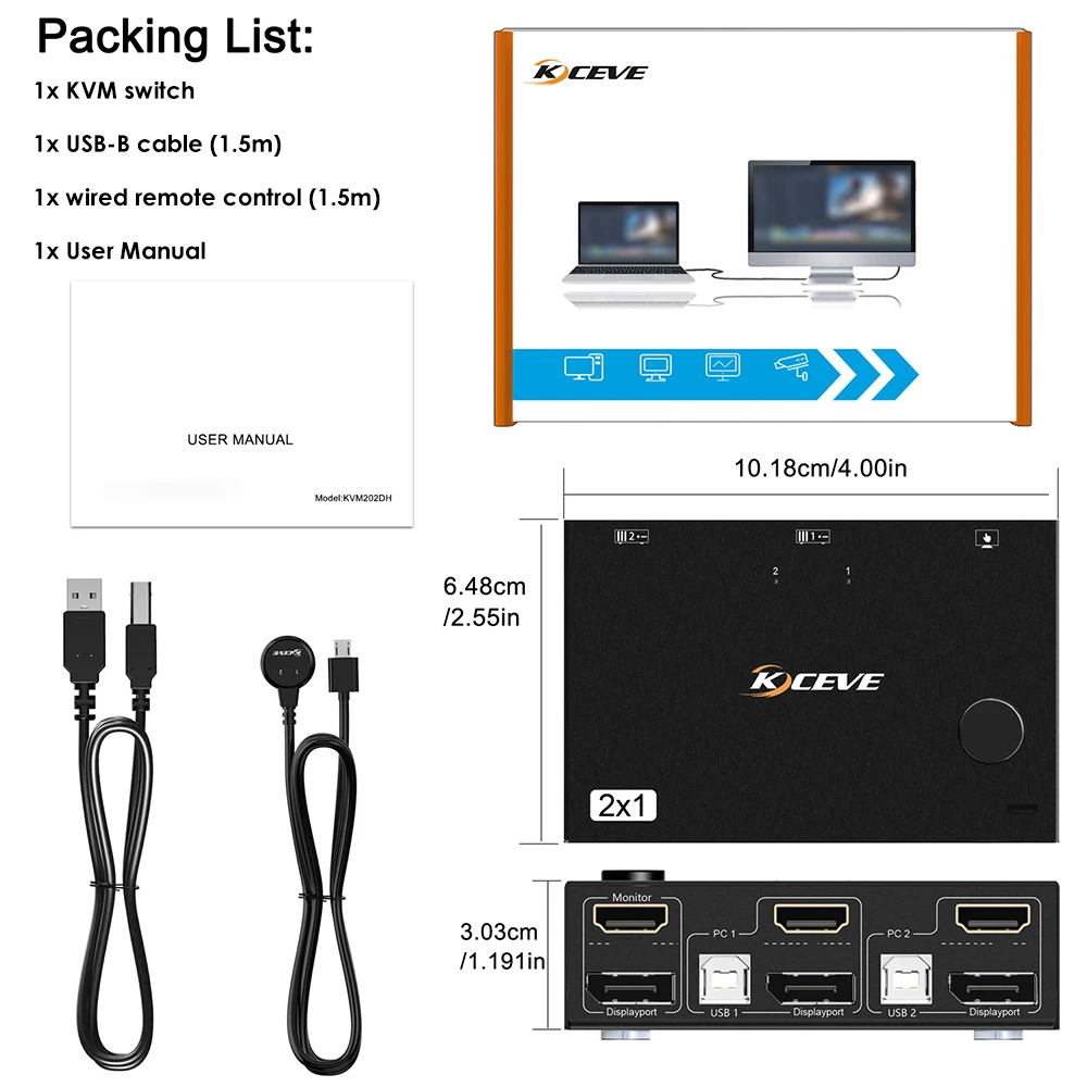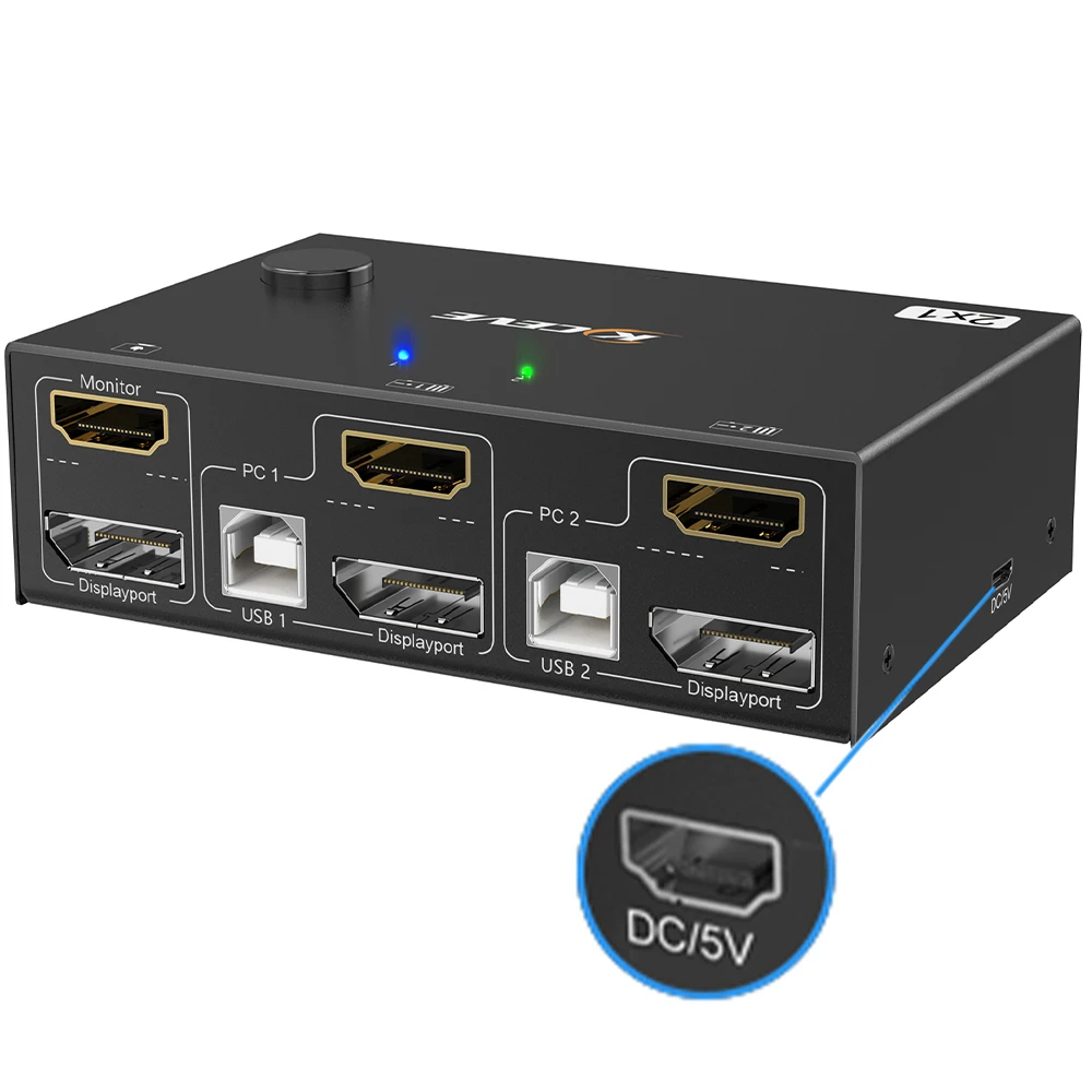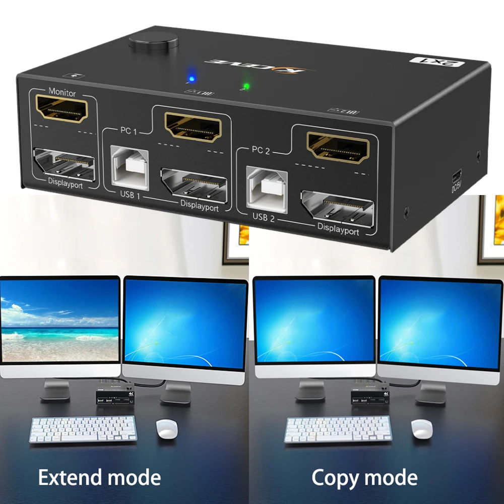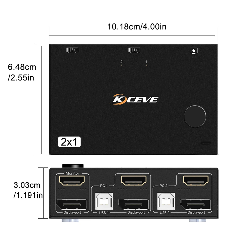 . Este conmutador KVM compatible con USB y HDMI + Displayport puede controlar 2 dispositivos