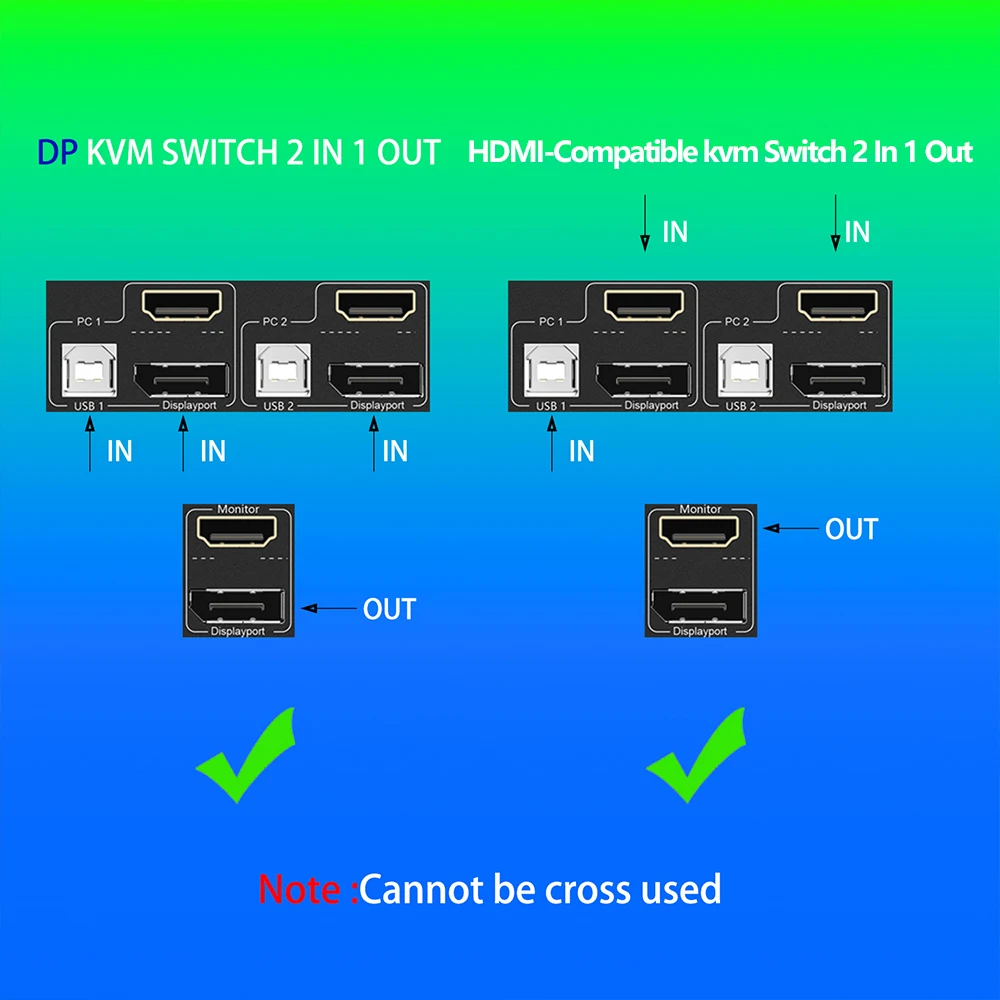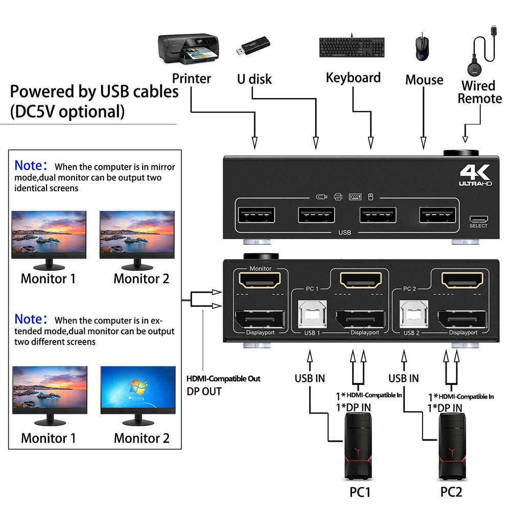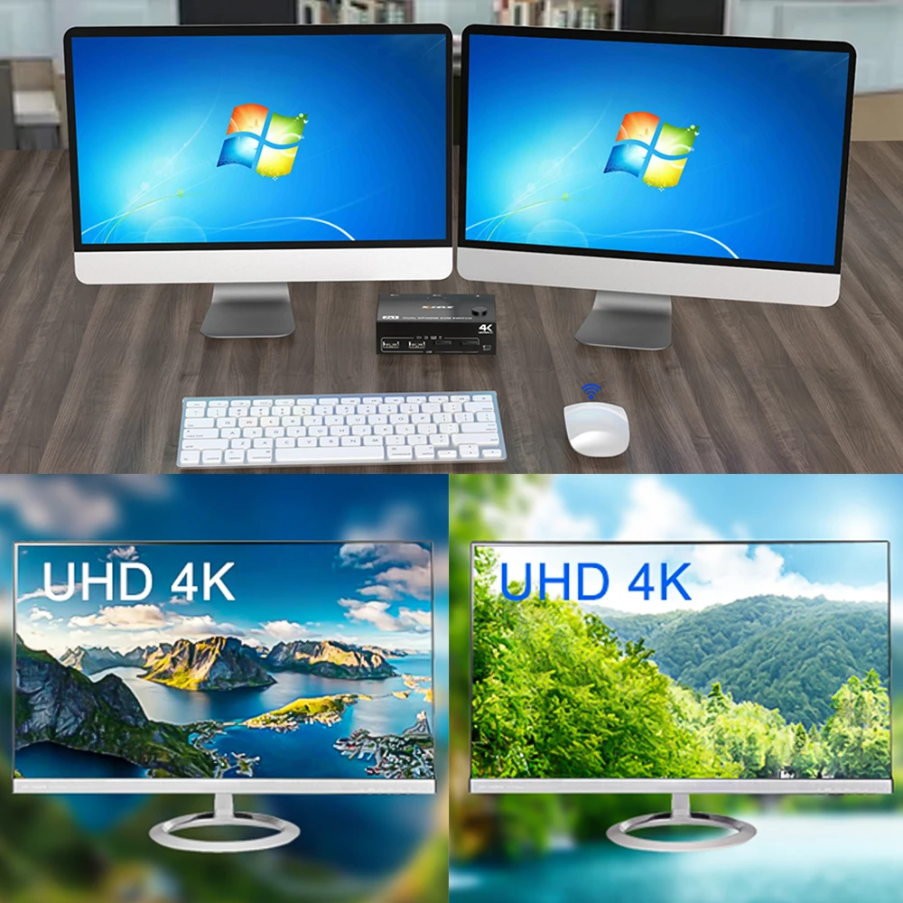 60Hz KVM HDMI-Compatible 2 In 2 Out Dual Monitor Switcher Controles 2 Computadora Laptop Monitor 2 Pantalla de entrada No requiere controlador
