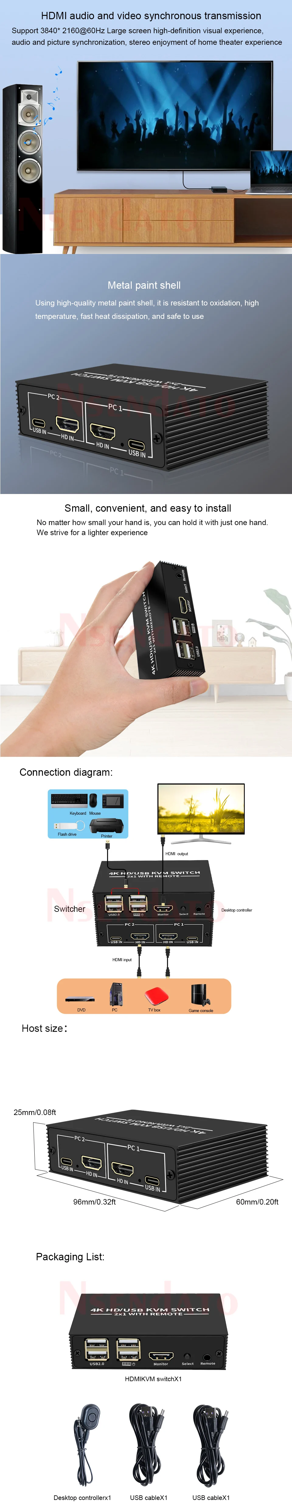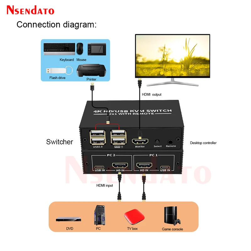 Comprar KVM Switch USB HDMI 4K 2 puertos HDMI USB KVM Switch Switcher 2x1 4x1 4 en 1 out 4k 60hz USB HDMI KVM Switch sharing keyboard mouse