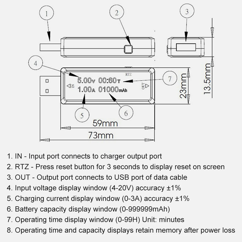 2. Puede medir la corriente y el voltaje de dispositivos de alimentación con puertos USB.