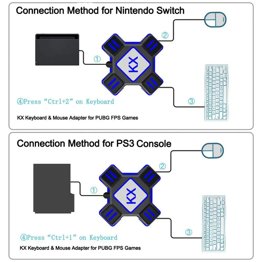 Comprar KX-Adaptador de controladores de juego USB, convertidor de teclado de videojuegos, ratón, para Switch/Xbox/PS4/PS3