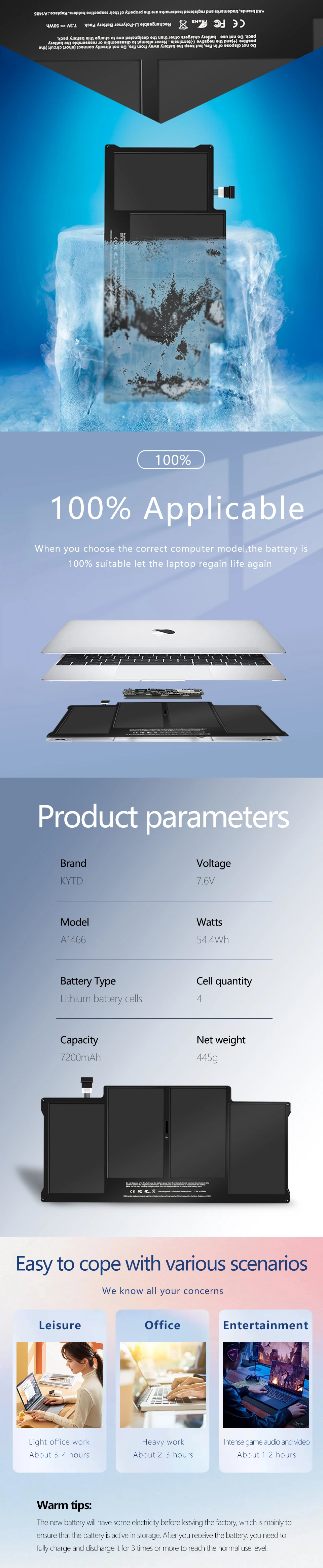 Comprar KYTD-batería A1496 para ordenador portátil, accesorio para Apple MacBook Air de 13 pulgadas, A1466, 2012/2013/2014, MD760LL/A, MD761CH/A, 54.4Wh, 2015/2017 mAh