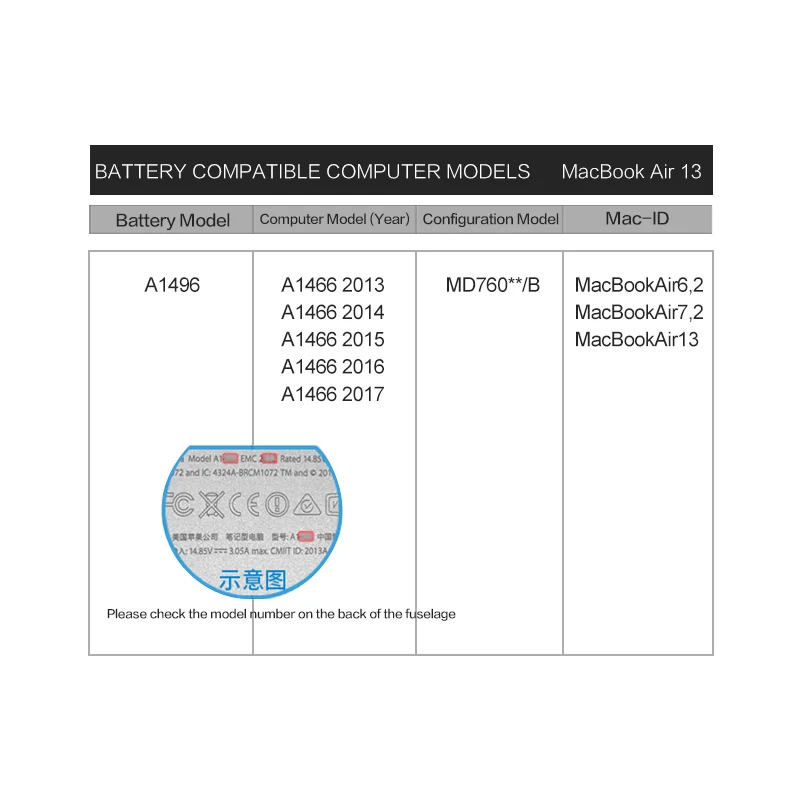 Aviso: Nuestra batería A1496 es totalmente compatible con A1405 y A1377