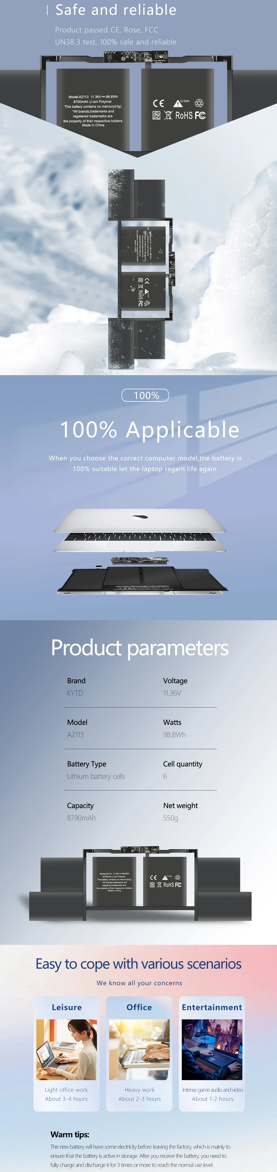 Comprar KYTD-batería A2113 para ordenador portátil, accesorio para Apple MacBook Pro Retina de 16 pulgadas, A2141 2019 EMC 3347 BTO/CTO mvj2xx/A MVVK2xx/A MVVL2xx