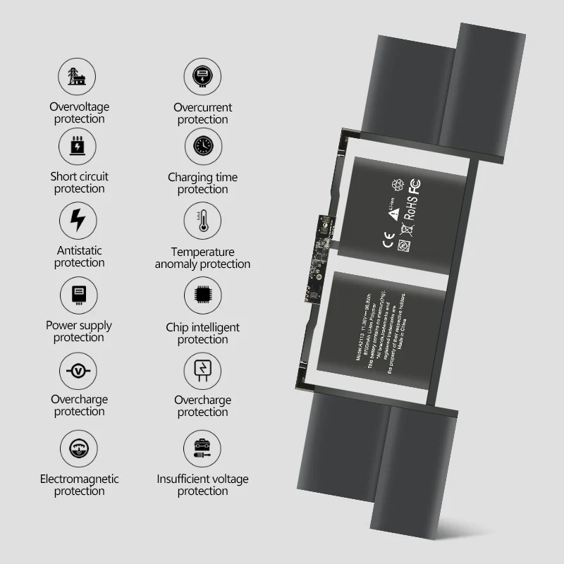 La Placa de protección de batería utiliza medidores de combustible de batería TI avanzados, proporciona protección de seguridad de primer y segundo nivel, contra sobretensión, subtensión, sobrecorriente, corriente de cortocircuito, sobrecarga y condiciones de sobretemperatura, así como otras fallas relacionadas con el paquete y la celda