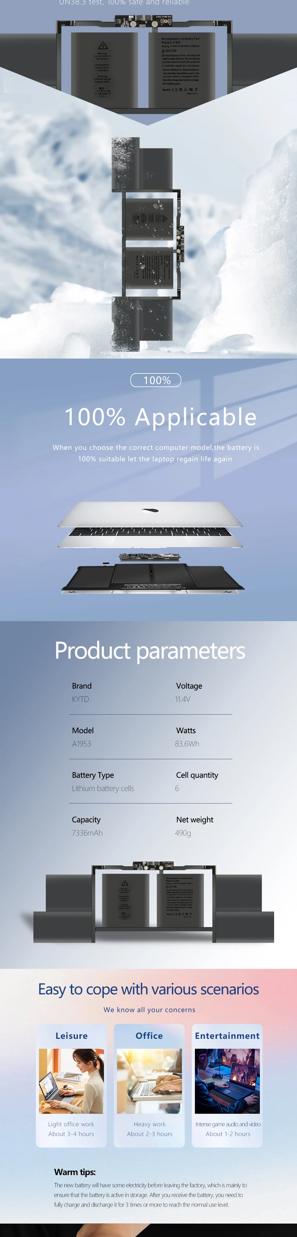 Comprar KYTD-Batería de ordenador portátil A1953 para Apple Macbook Pro, A1990, 2018, 2019, EMC3215, EMC3359, MR962LL, 11,4 V, 83.6Wh, herramienta de envío gratis