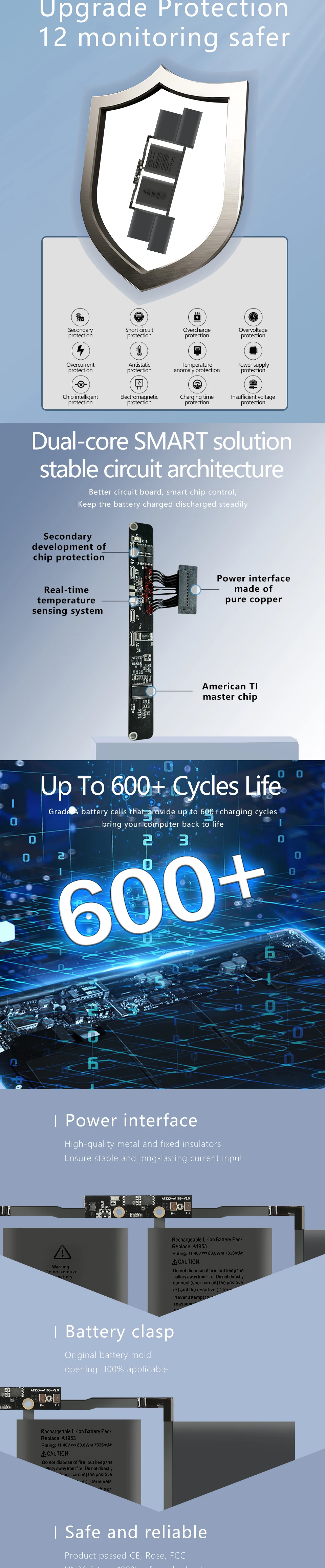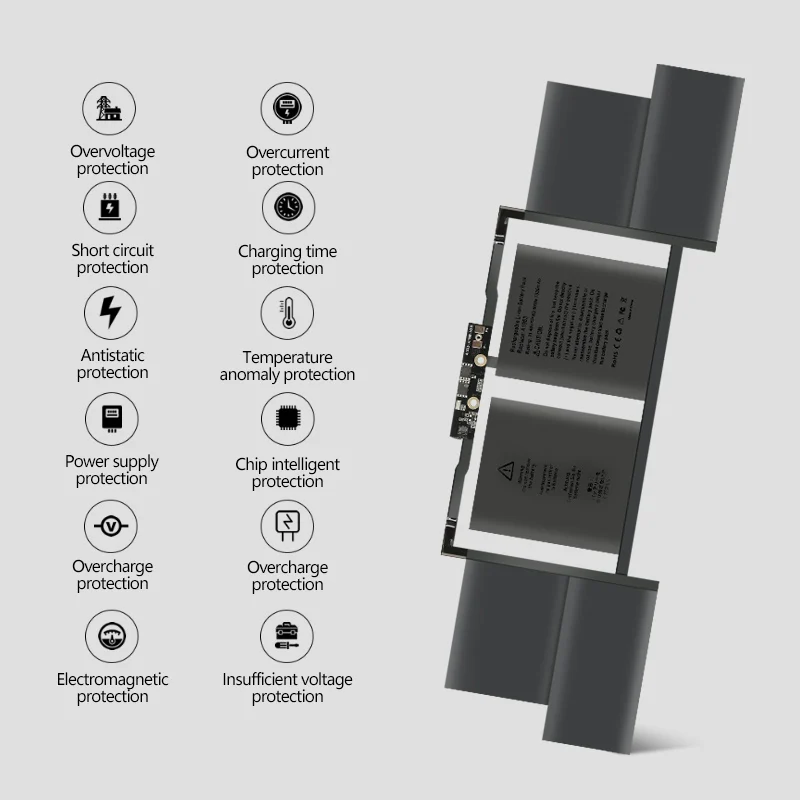 La Placa de protección de batería utiliza medidores de combustible de batería TI avanzados, proporciona protección de seguridad de primer y segundo nivel, contra sobretensión, subtensión, sobrecorriente, corriente de cortocircuito, sobrecarga y condiciones de sobretemperatura, así como otras fallas relacionadas con el paquete y la celda