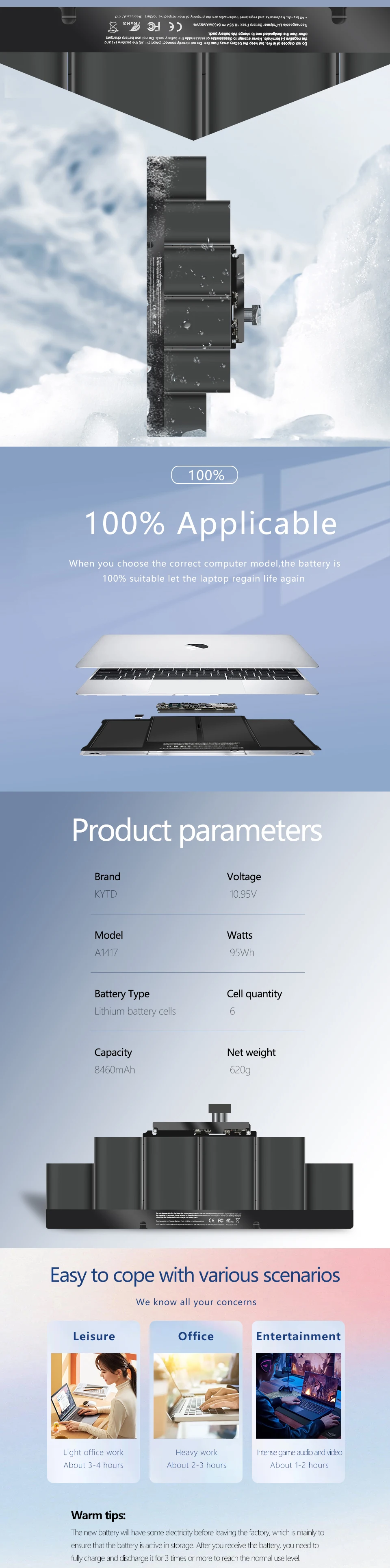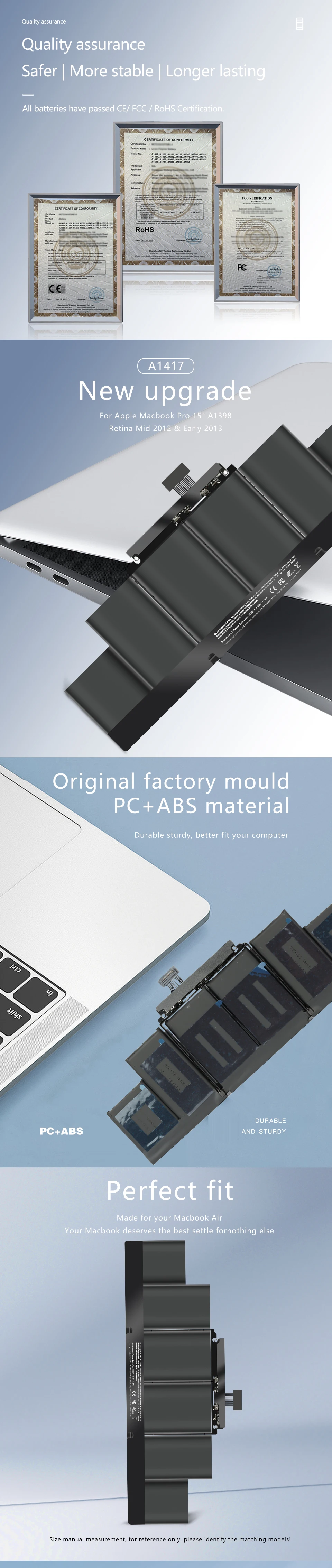 Comprar KYTD-batería para ordenador portátil, accesorio para Apple Macbook Pro 15 A1398 2012 2013 MC975LL/A MC976LL/A MD831LL/A, herramientas gratuitas, A1417