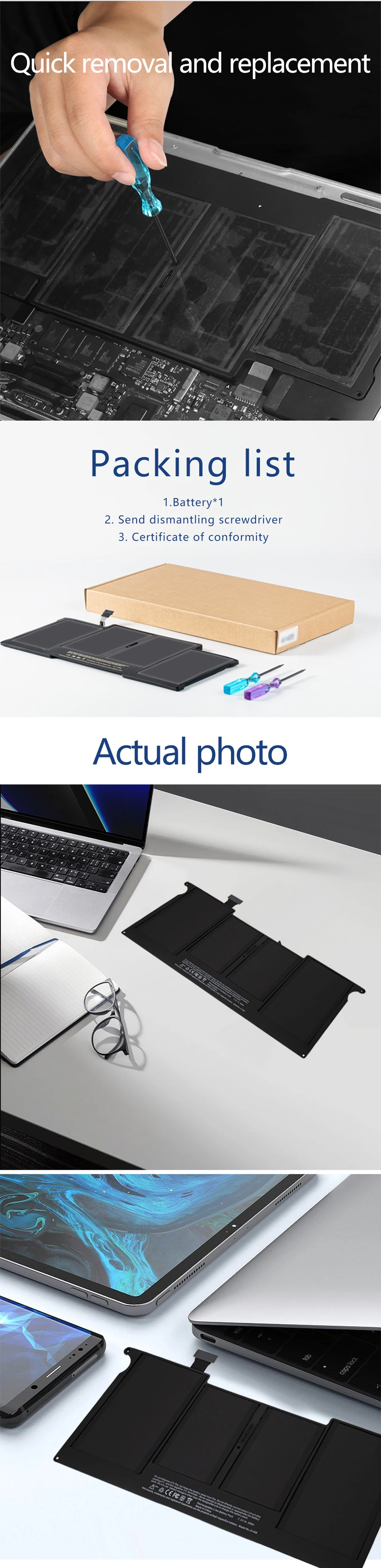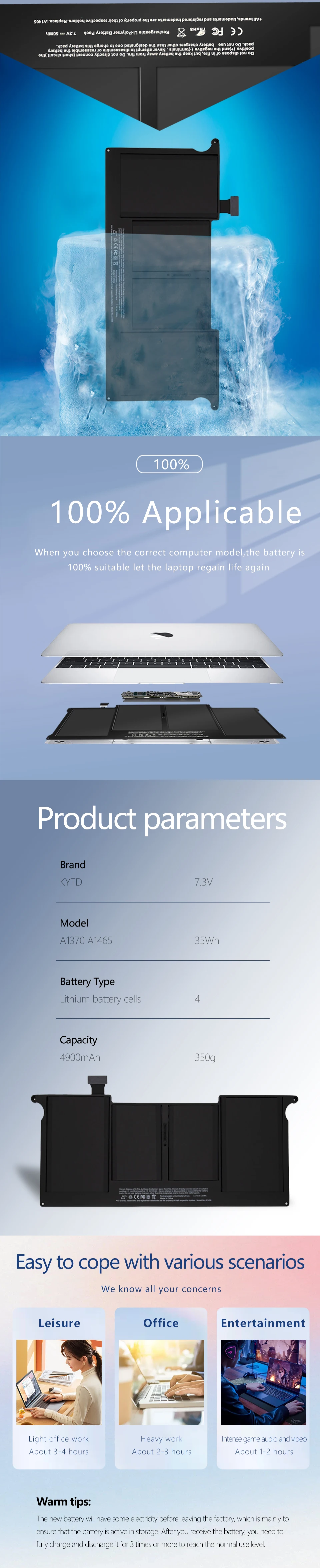 Comprar KYTD-batería para portátil Apple MacBook Air, 11 ", A1495, A1406, A1375, A1370, A1465, 2010-2017, herramientas gratuitas