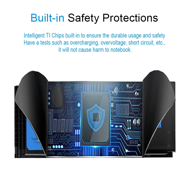 La Placa de protección de batería utiliza medidores de combustible de batería TI avanzados, proporciona protección de seguridad de primer y segundo nivel, contra sobretensión, subtensión, sobrecorriente, corriente de cortocircuito, sobrecarga y condiciones de sobretemperatura, así como otras fallas relacionadas con el paquete y la celda