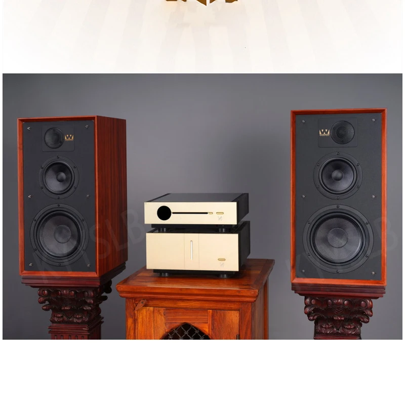 Tipo: Caja de estantería inversa de frecuencia de 3 Divisiones Tono alto: 25mm * 1 película de seda bola suave superior tono alto Rango medio: 135mm * 1 unidad de tela antibalas de Kevlar tejido negro Baja Frecuencia: 200mm * 1 unidad de tela a prueba de balas de Kevlar tejido negro Potencia de amplificador sugerida: 20-200W Impedancia estándar: 6 Ω Sensibilidad: 90dB Respuesta de frecuencia: 40Hz ~ 20kHz Punto de división de frecuencia: 630Hz, 2,4 kHz Extensión de baja frecuencia (-6dB): 35Hz Tamaño mm (HWD): 565*300*330MM Color: Madera de nogal
