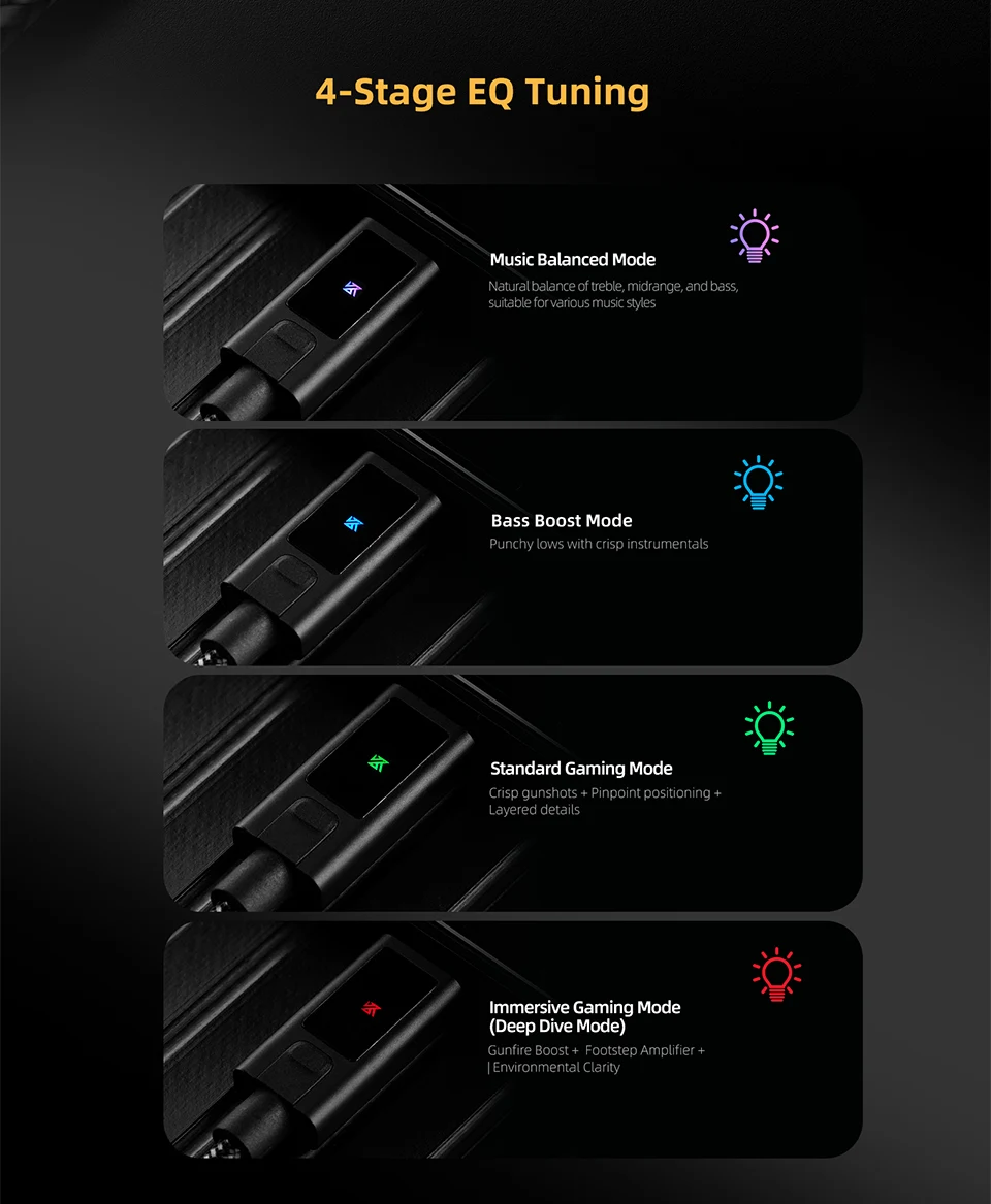 Muy bueno, lo probé tan pronto como llegó. Sigue los parámetros de ecualización proporcionados. Los dos primeros son para música con buenos bajos y agudos. Los dos últimos son para juegos, cortan los bajos y aumentan los medios y agudos. Para aquellos que no tienen experiencia con DACs, lo recomiendo por su excelente relación costo-beneficio. Ahora, ten cuidado de no confundirlo con el KZ M2, que es el cable ya con conectores QDC PIN C. ESTE ES EL KZ AM02.