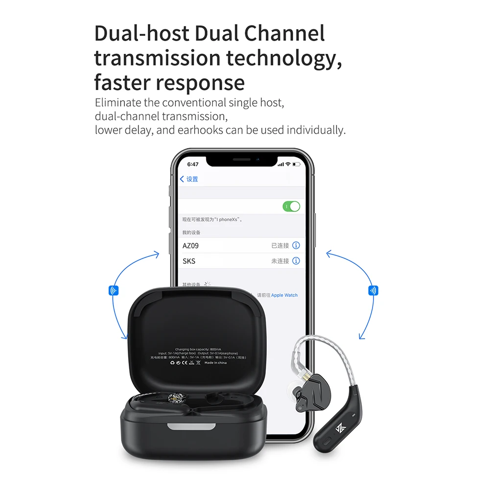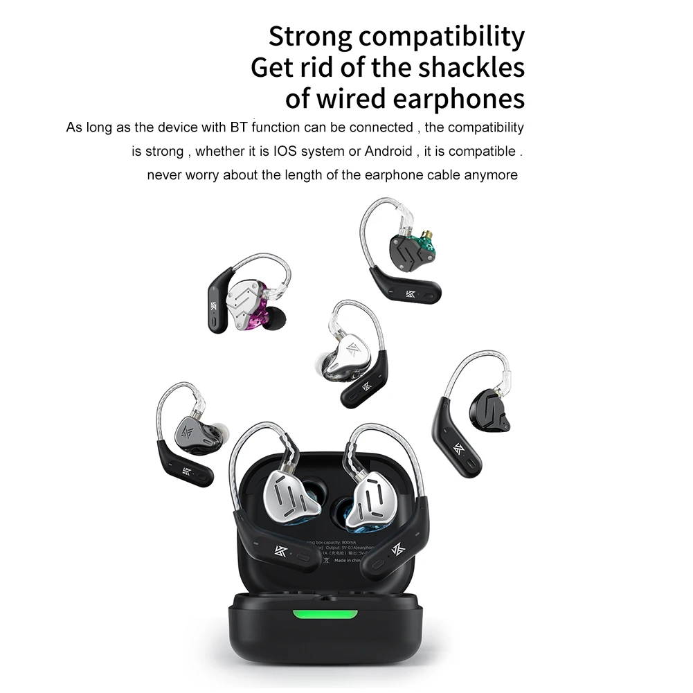 1. Conmutación por cable e inalámbrica:El módulo KZ compatible con Bluetooth está diseñado específicamente para auriculares con pines de 0,75mm/0,78mm, lo que permite que los auriculares con cable se vuelvan inalámbricos, liberándolo de las restricciones de cable. Le permite cambiar entre los modos con cable e inalámbrico dependiendo de los diferentes escenarios, al tiempo que garantiza una calidad de sonido original. Este producto solo es adecuado para ganchos para los oídos compatibles con Bluetooth y no incluye auriculares.