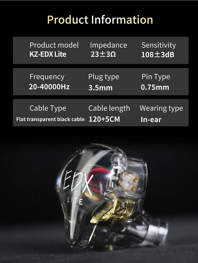 KZ EDX Lite -Auriculares deportivos EDX Lite, audífonos estéreo de graves HIFI, para música en el oído, Monitor de escenario en vivo, para juegos, ZSNPROX ZSTX