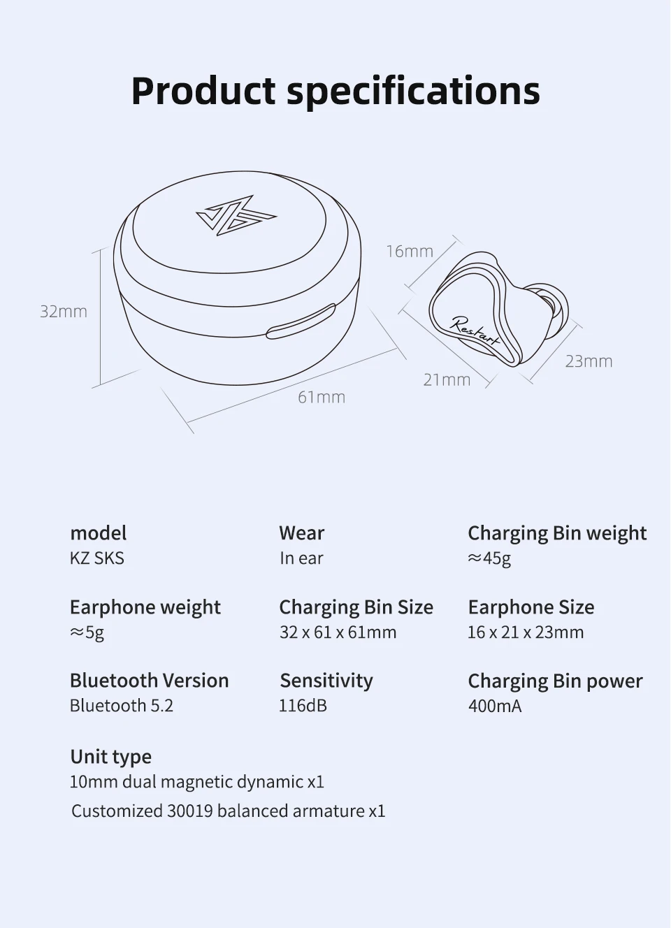 KZ SKS 1DD + 1BA Auriculares híbridos Bluetooth 5.2 TWS headphonerue True Wireless Control táctil Cancelación Auriculares deportivos para juegos