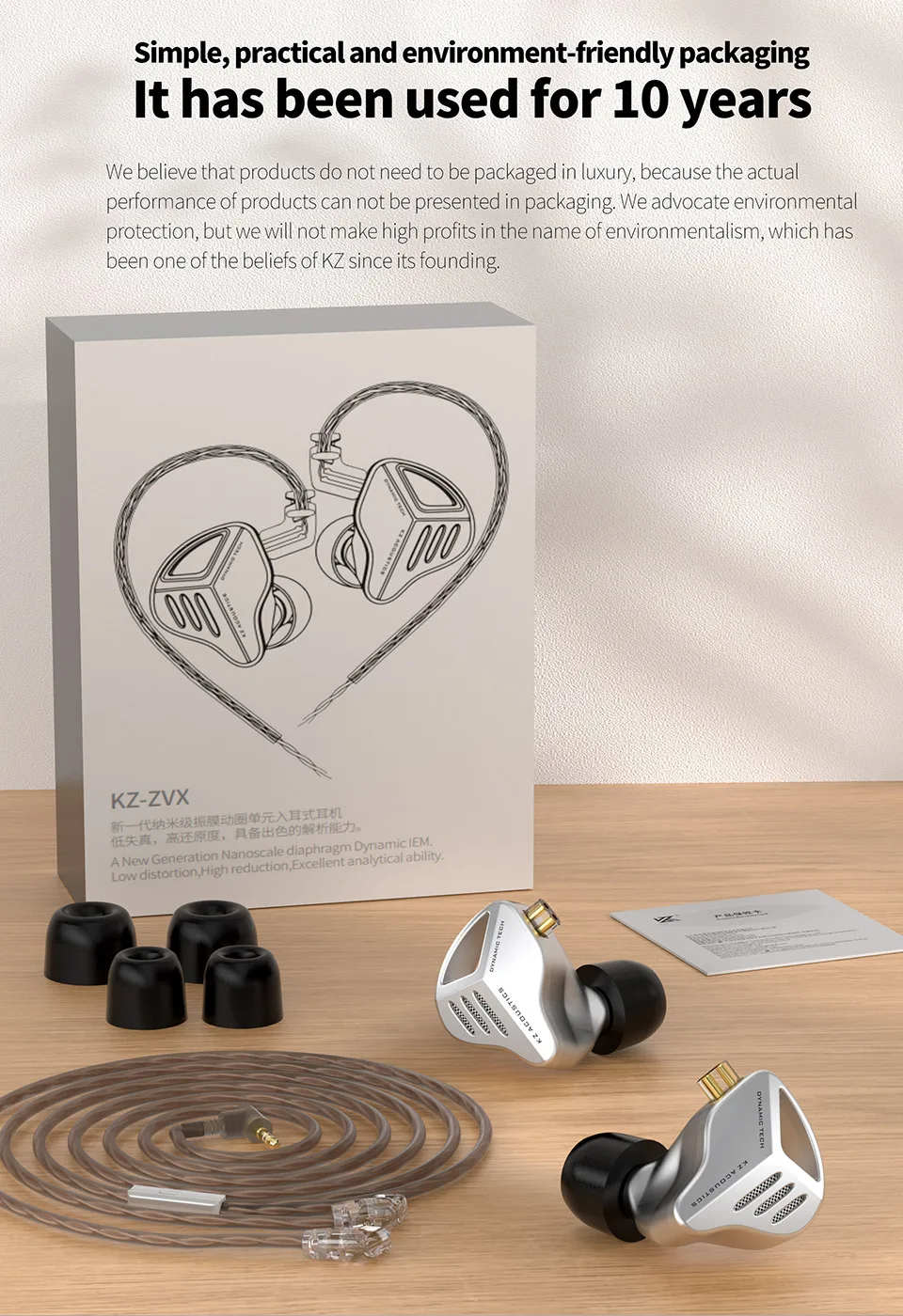 El diseño estético de la curva del usesgeometric y modernista de ZVX, y continúa El aspecto ergonómico clásico de los productos de KZ. Deja que no sólo tenga una apariencia artística, sino que también tenga una buena experiencia de uso.