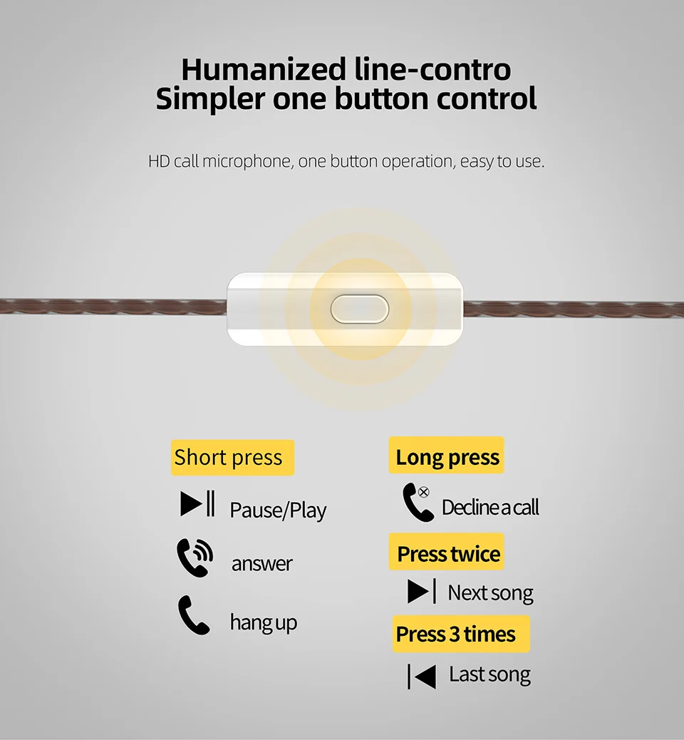 • Control de volumen :Ajuste el volumen de su música o llamadas con facilidad usando el control de volumen incorporado.