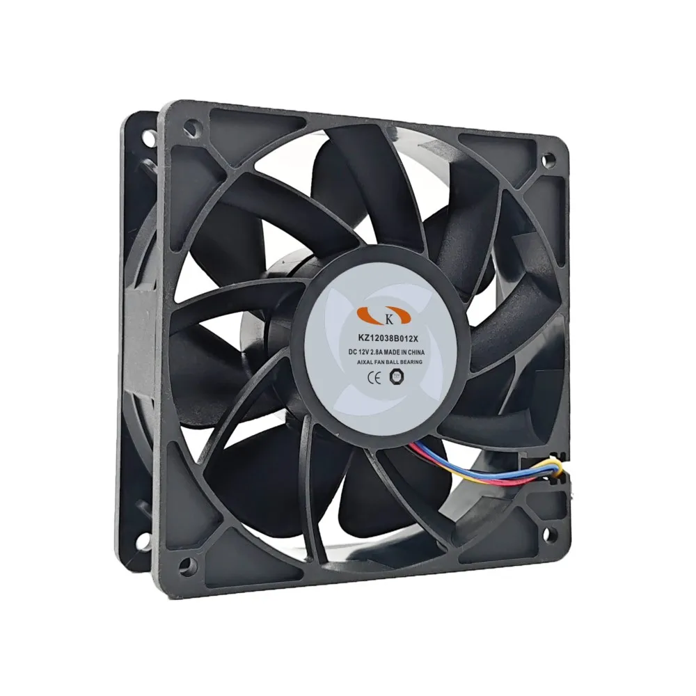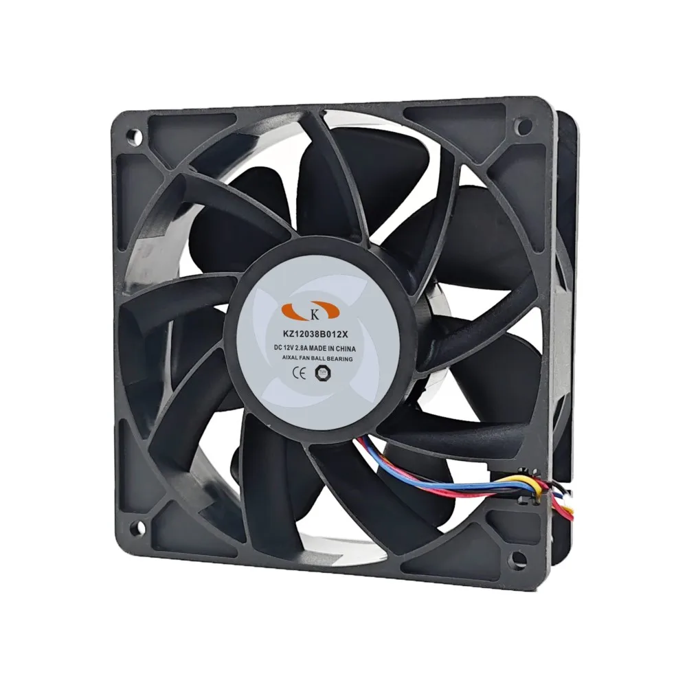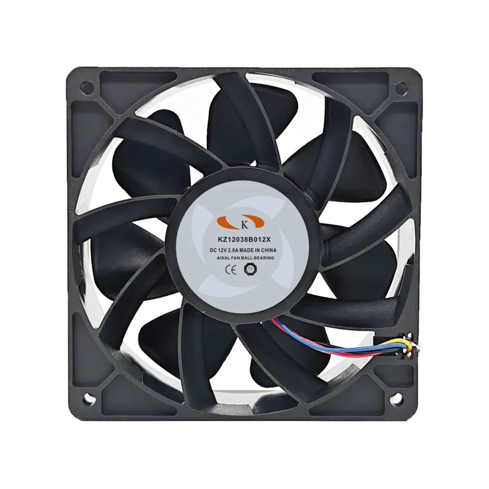 Product Description: The KZ12038B012X is a high-performance, high-power DC cooling fan measuring 120mm x 120mm x 38mm. Operating at 12V with a significant current draw of 2.8A, this fan reaches a high speed of 6000 RPM, delivering an extreme airflow of 210.38 CFM and a substantial static pressure of 21.60 mmH2O. While providing powerful cooling, it produces a noise level of 64 dB(A). It features high-precision dual ball bearings for exceptional reliability and a long lifespan of 80,000 hours at 25°C. The fan connects via a 4-wire connector. Constructed with a robust PBT frame and impeller, both reinforced with 30% glass fiber and V0 grade flame retardant, this fan is built for demanding environments. The impeller rotates counterclockwise when viewed from the blade side. It operates in temperatures from -10°C to +70°C and has a wide power range tolerance. Key Selling Points: Extreme High Airflow (210.38 CFM): Provides maximum cooling for demanding applications. Powerful 12V / 2.8A Operation: Designed for high-performance cooling needs. High Speed (6000 RPM): Ensures rapid and effective heat dissipation. Durable Dual Ball Bearing: Offers a long lifespan of 80,000 hours. Robust Construction: Made with high-quality, flame-retardant materials. 4-Wire Connection: Supports PWM speed control for optimized cooling and noise (if your system supports it). Designed for Server and Workstation: Ideal for high-performance computing environments. Application Scenarios: This high-power, high-airflow fan is ideal for: High-Performance Server Cooling: Providing critical cooling for demanding server environments. Workstation Cooling: Ensuring optimal temperatures in high-end workstations. Mining Rigs: Providing intense cooling for cryptocurrency mining hardware. Industrial Equipment Cooling: Managing extreme heat in industrial machinery. High-Power LED Cooling: Dissipating heat from high-intensity lighting systems. Any Application Requiring Extreme Airflow and Robust Cooling in a 120mm Form Factor. Embedded Industrial Cooling Fan Keywords: high power fan, high airflow fan, 120mm fan, 12V fan, violent fan, powerful fan, server fan, workstation fan, mining fan, industrial fan, extreme cooling fan, high speed fan, high RPM fan, dual ball bearing fan.