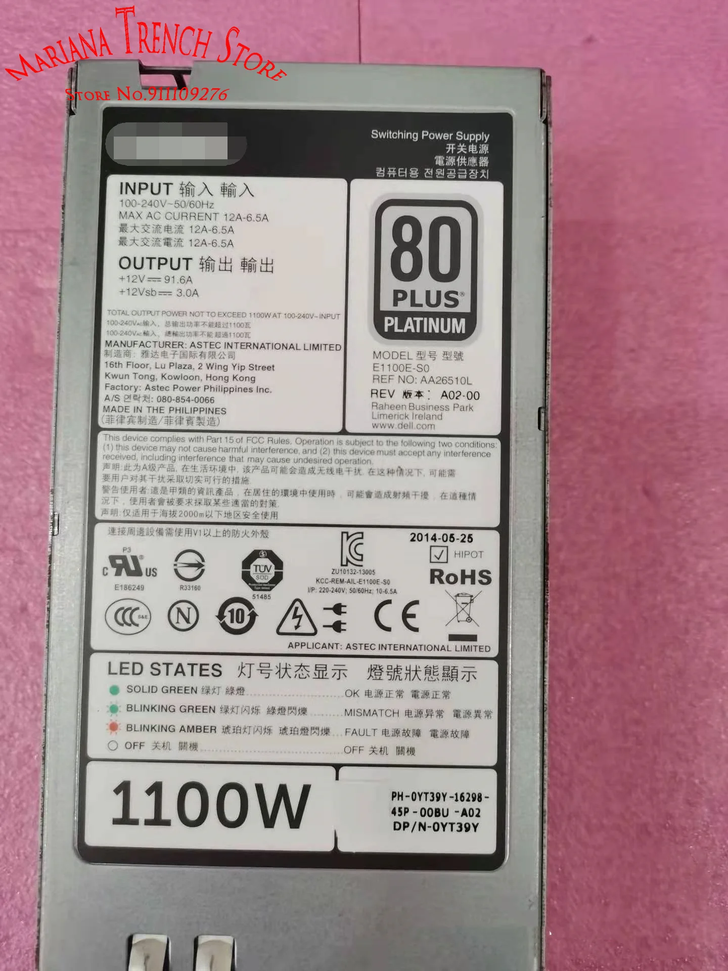 Comprar L1100E-S0 E1100E-S0 para DELL R620 R720 R820 Fuente de alimentación del servidor 1100W