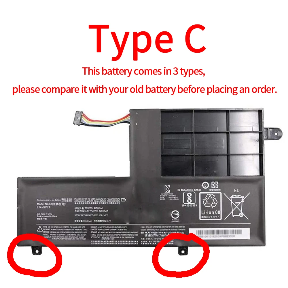 Esta batería viene en 3 tipos, que se distinguen por varios orificios de montaje para tornillos.