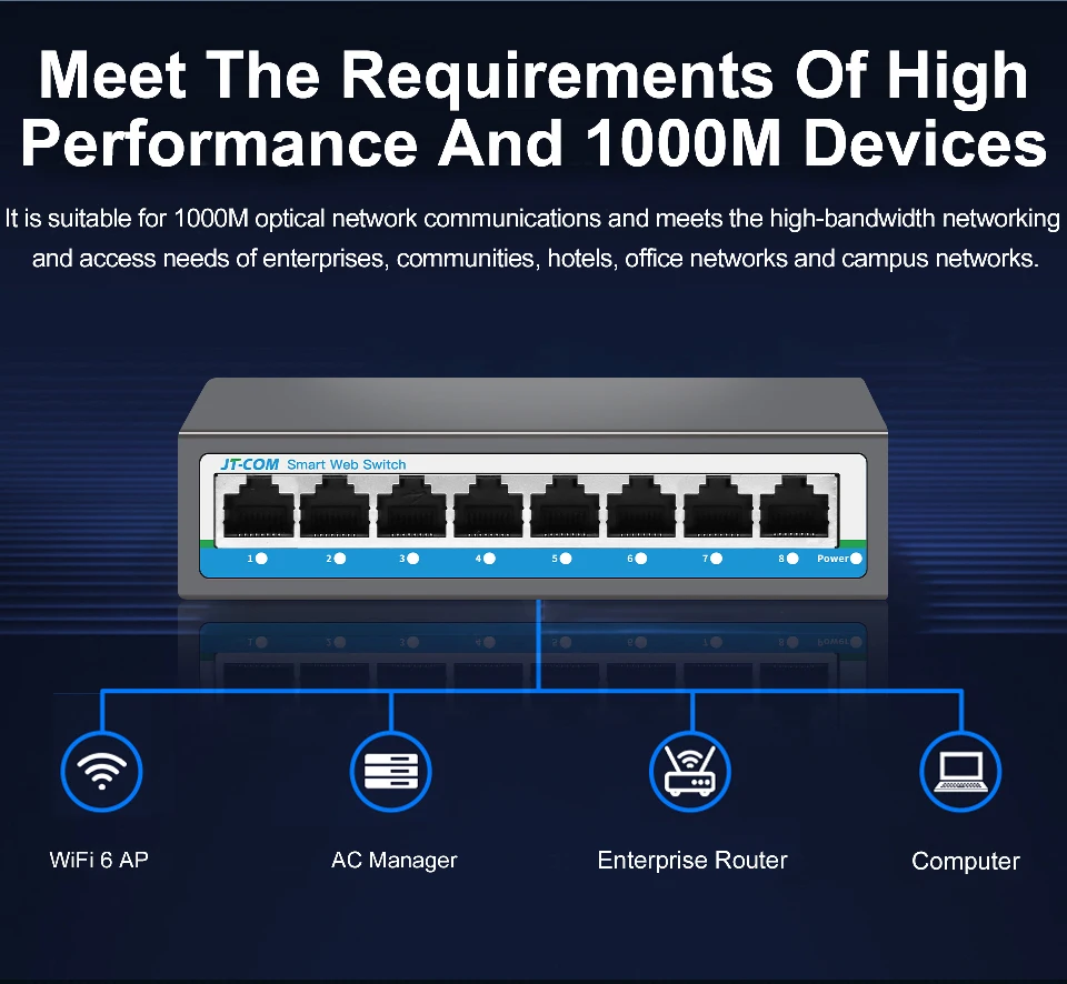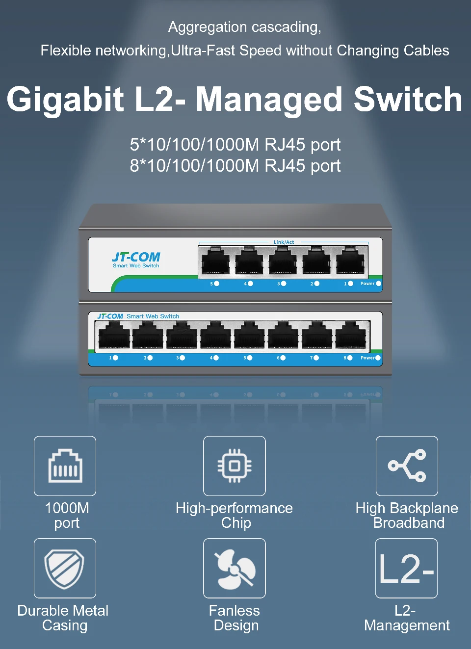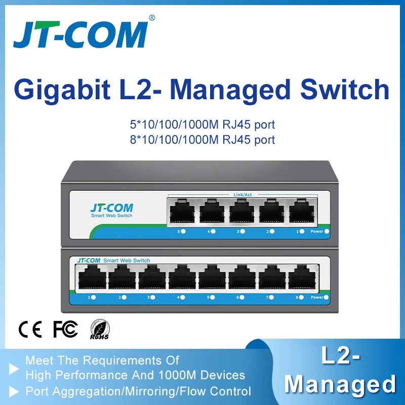 Comprar L2- Conmutador administrado con puertos RJ45 de 5*100/1000M Conmutador de red Gigabit de 8 puertos compatible con LACP, QoS, apilable, VLAN, SNMP