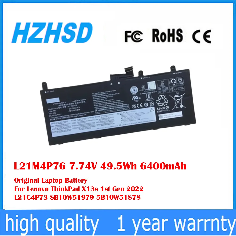 Comprar L21M4P76 7,74 V 49,5Wh 6400mAh batería Original del ordenador portátil para Lenovo X13s 1a generación 2022 L21C4P73 SB10W51979 5B10W51878