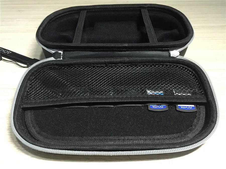 Ni siquiera sé si estar contento con este caso o no. 1) La funda encaja perfectamente con los modelos L3/R3 y L2/R2. pero aquí es donde terminan las ventajas y comienzan las desventajas. 2) olor terrible 3) la consola queda un poco suelta en el estuche porque... La forma en forma de agarre está hecha con un margen de tamaño. 4) La funda es simplemente enorme: 22x13x6.5, pero a pesar de esto, simplemente no hay dónde poner el cargador dentro porque... La cubierta superior es lo más plana posible y se ajusta perfectamente a la pantalla. 5) precio. Estuche Eva por casi 1.5k Antes de esto, compré una funda maravillosa con dimensiones de 21x11.5x5, absolutamente sin olor, hecha de EVA duro y extremadamente agradable al tacto por 300 rublos. Una diferencia es que no tiene forma de agarre, pero aun así la Vita encaja perfectamente en el agarre completo, incluso sin carga. Es por eso que no hay sensación de que te hayan engañado.