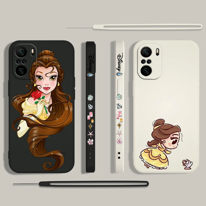 Comprar La Bella y La Bestia para Xiaomi Redmi Note 13 12 12Pro 11 11S 11T 10S 10 Pro Plus 5G funda de teléfono con cuerda izquierda líquida
