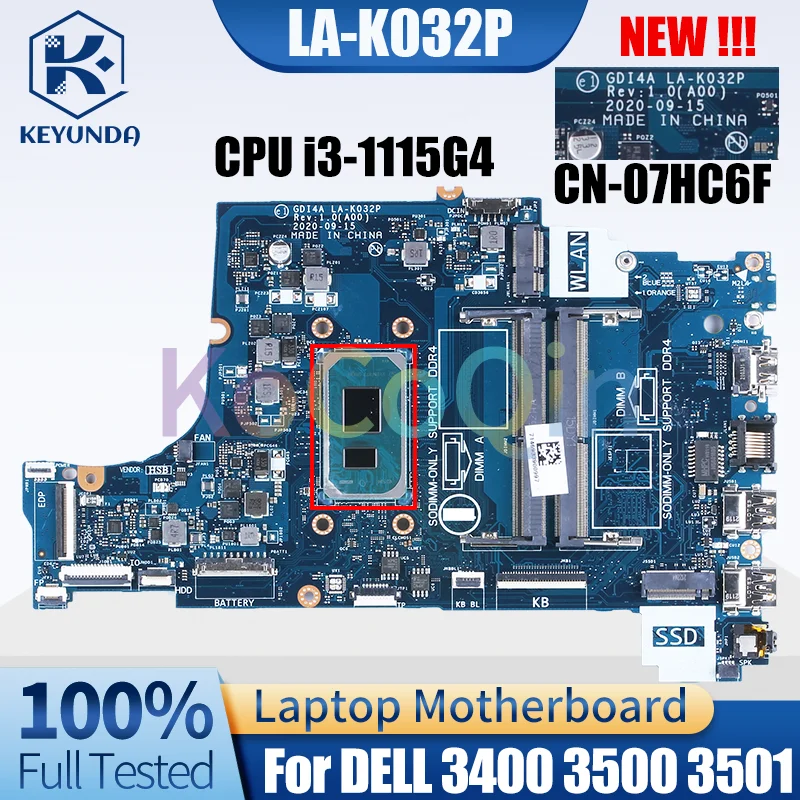 Comprar LA-K032P para DELL Inspiron Vostro 3400 3500 3501 placa base para ordenador portátil Core i3-1115G4 CN-07HC6F 07HC6F 7HC6F placa base para portátil nuevo