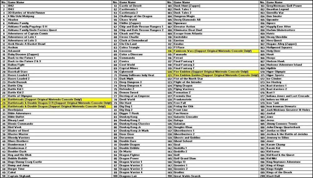 1. Hay dos listas de juegos, cuando juegues, presiona el botón "Seleccionar" para cambiar las páginas del juego. 2. Algunos juegos admiten guardar el progreso del juego. No todos los juegos pueden salvar el progreso. 3. Algunos juegos tienen bloqueo de región, puede causar El juego no puede jugar en tu máquina.