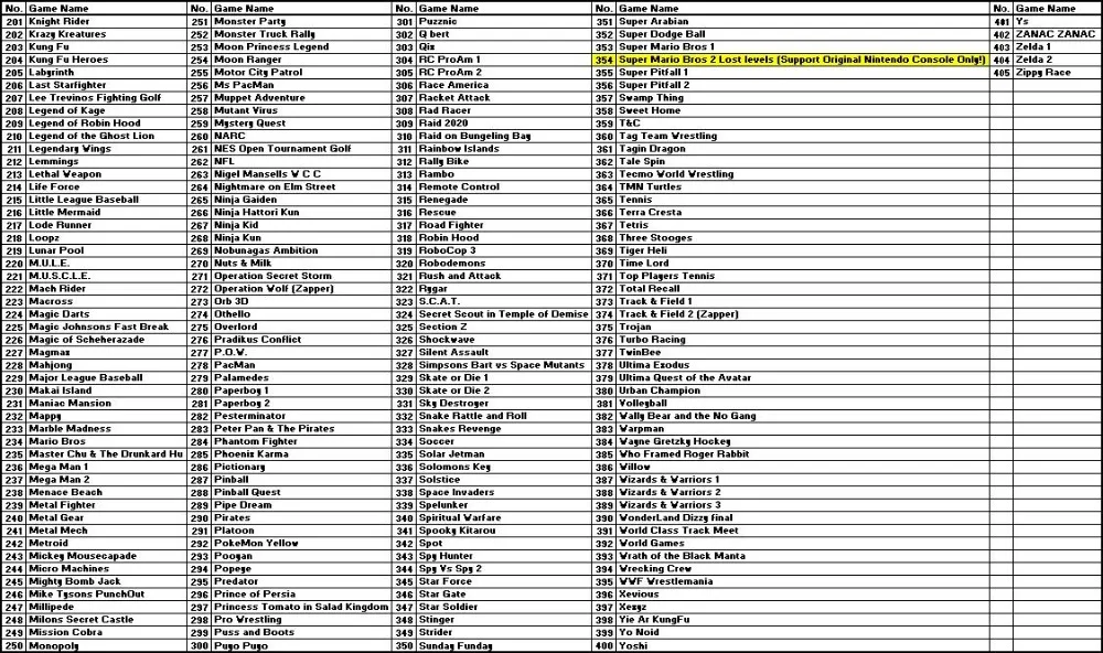 1. Hay dos listas de juegos, cuando juegues, presiona el botón "Seleccionar" para cambiar las páginas del juego. 2. Algunos juegos admiten guardar el progreso del juego. No todos los juegos pueden salvar el progreso. 3. Algunos juegos tienen bloqueo de región, puede causar El juego no puede jugar en tu máquina.