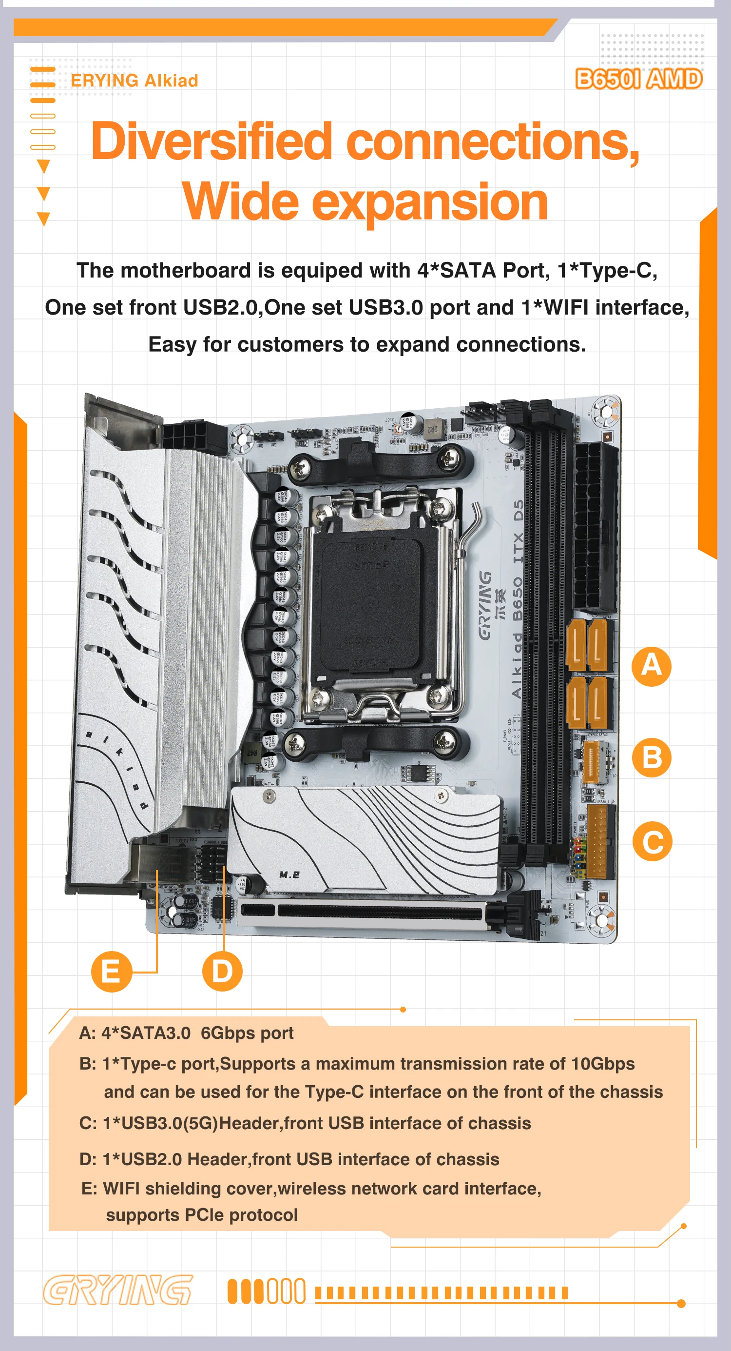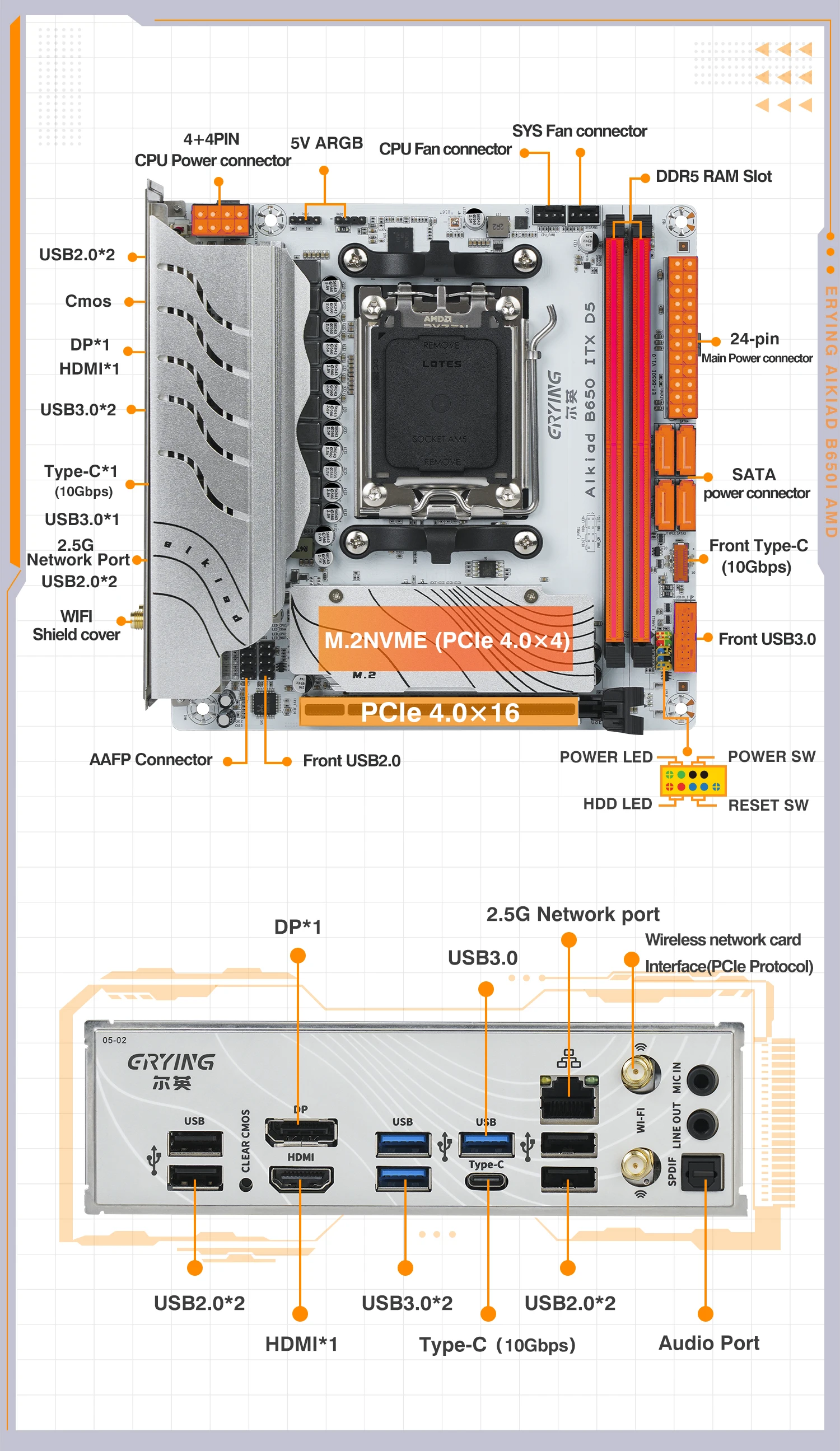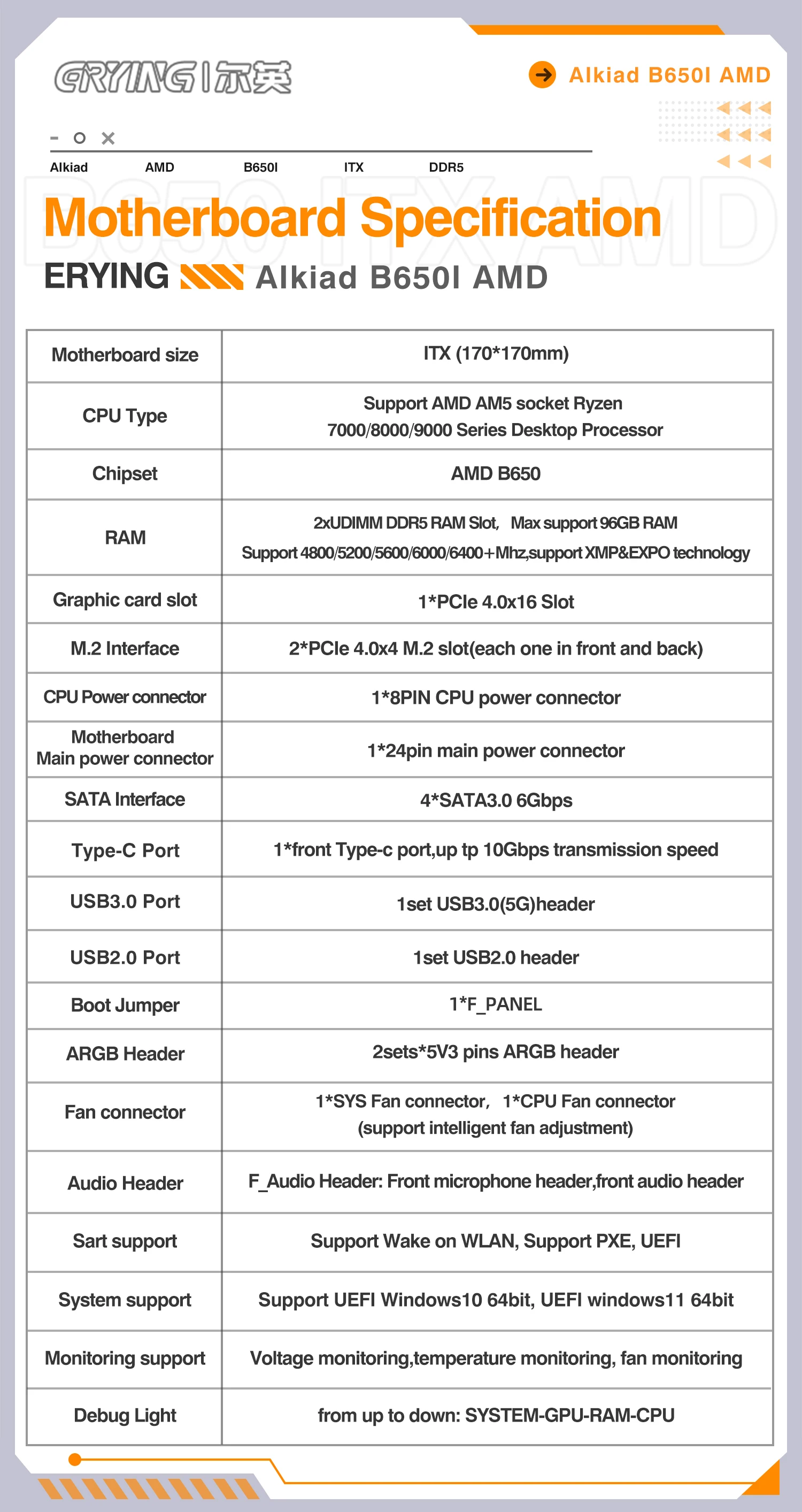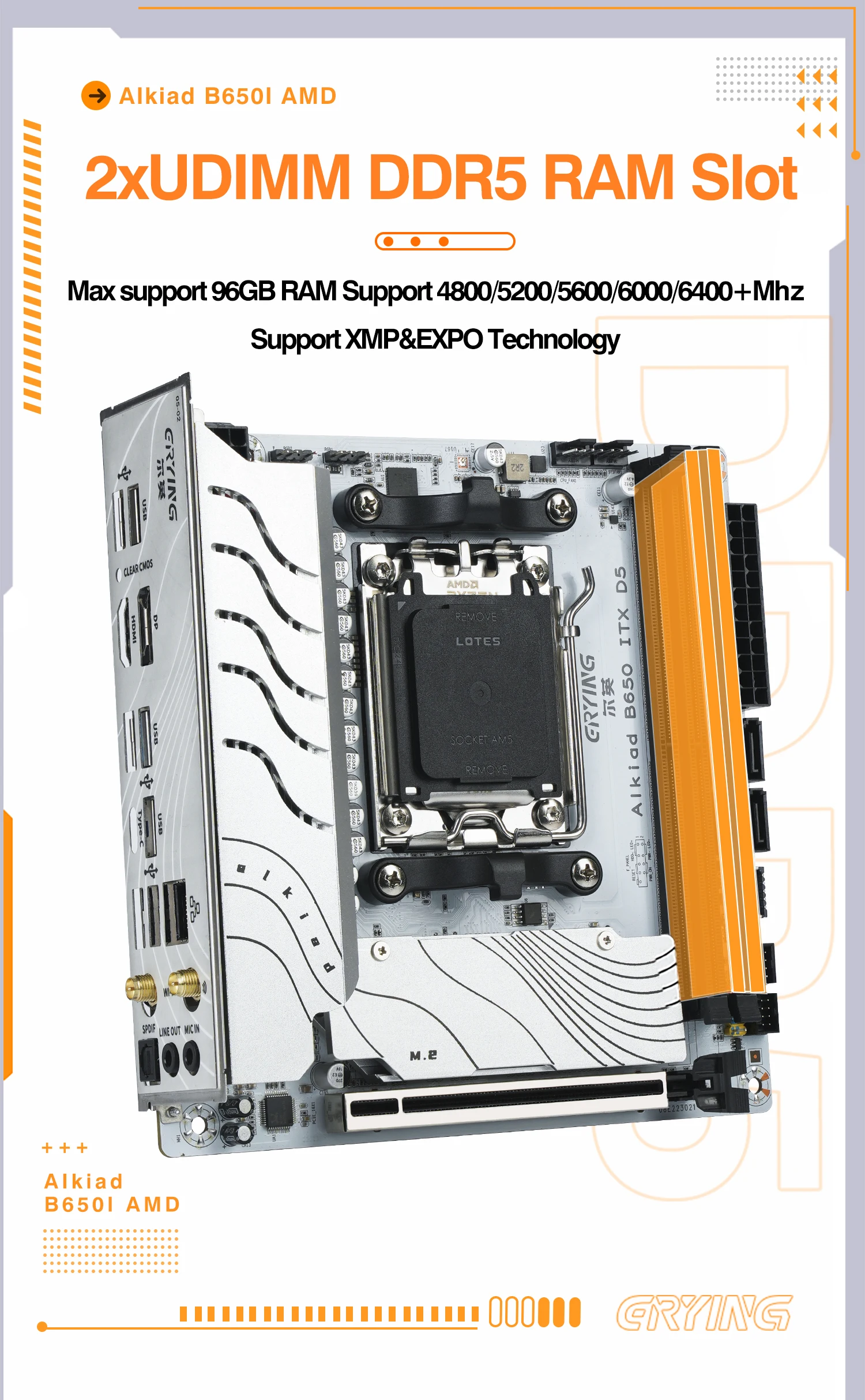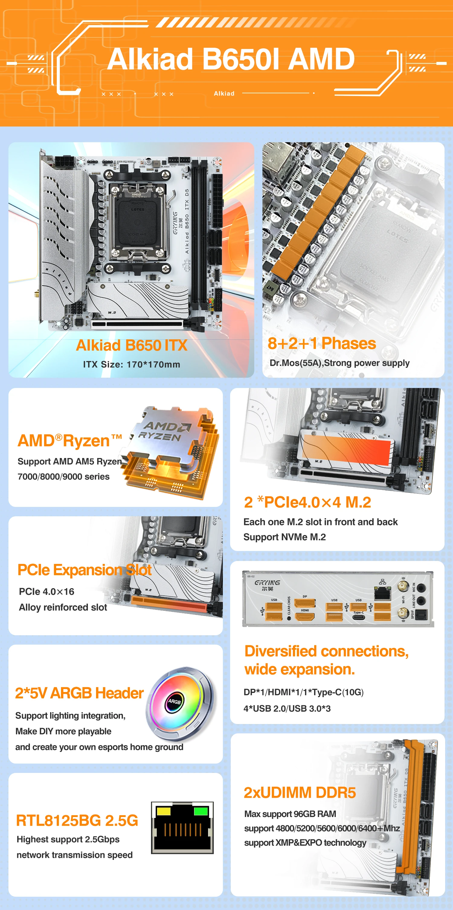 Comprar La placa base ERYING AM5 admite procesadores de CPU AMD Ryzen serie 7000 DDR5 memoria RAM de doble canal ITX B650i 2 * PCIe4.0x4 M.2 NVME