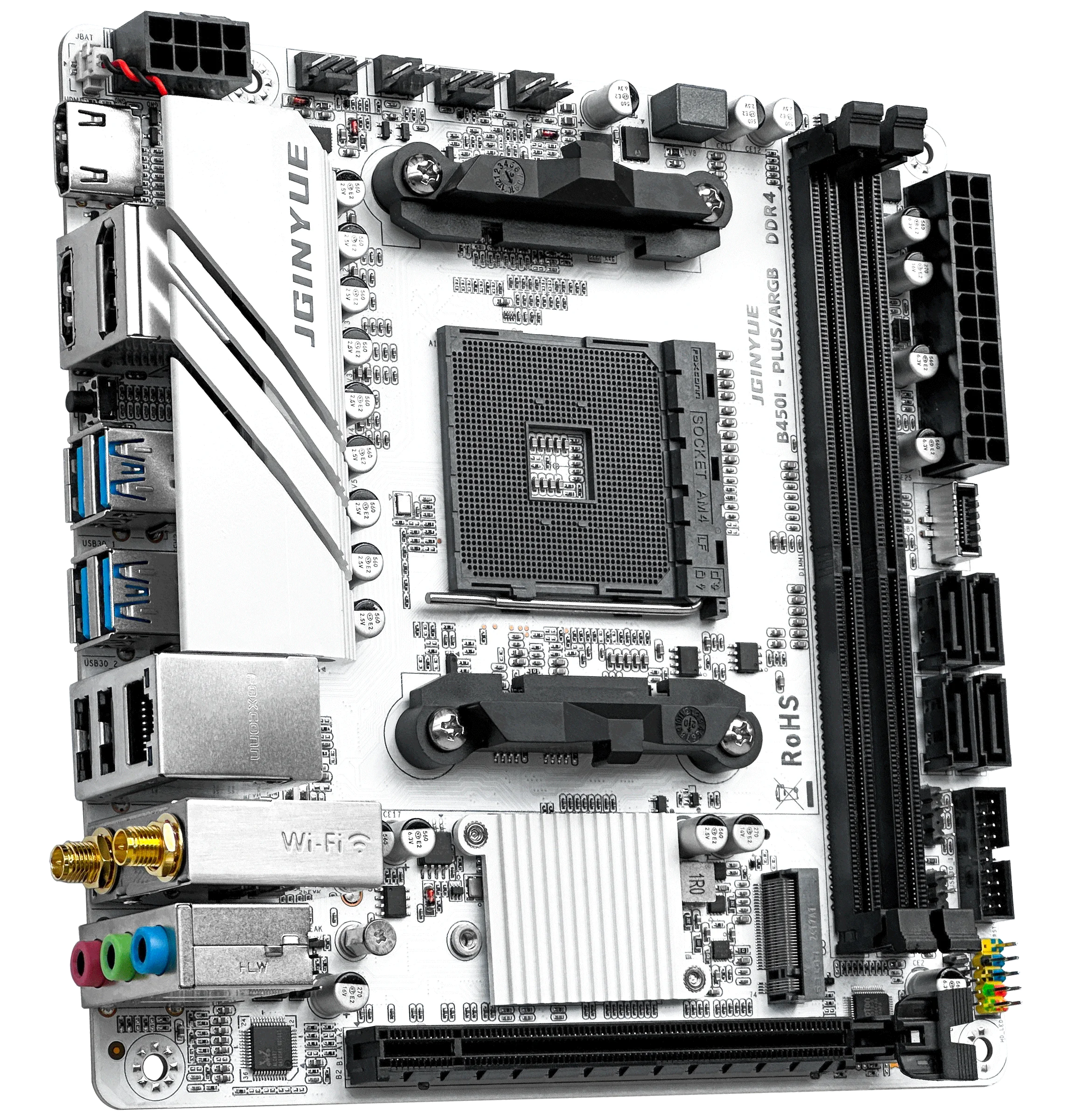 La placa base parece ser de calidad decente, la instalé en una carcasa con factor de forma itx y hasta ahora todo bien. Vale la pena señalar que si planea usar wifi, deberá proporcionar su propia tarjeta wifi para que encaje en la carcasa vacía suministrada. También puedes descargar el software Rgb desde el sitio web de JGINYUE.