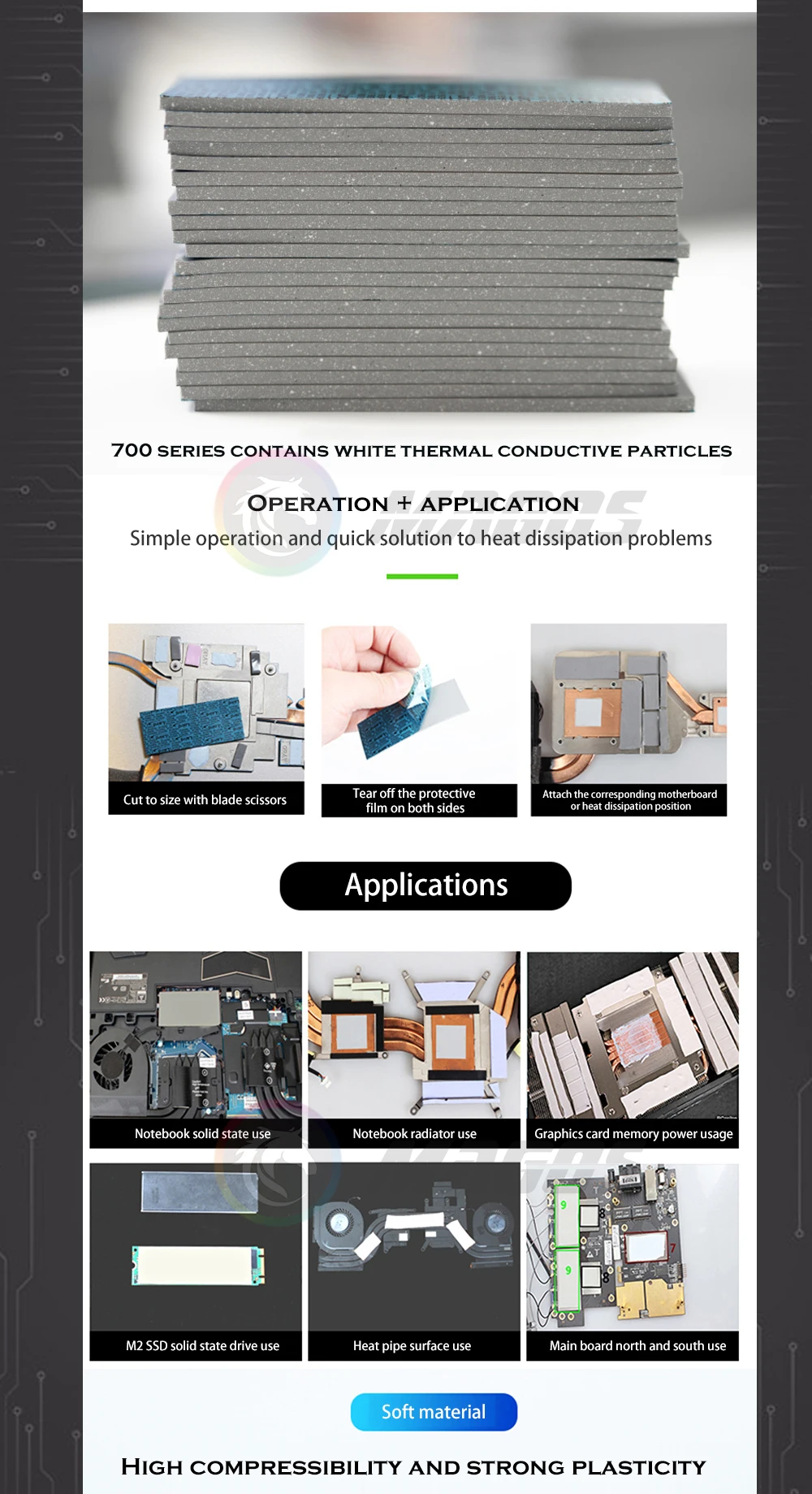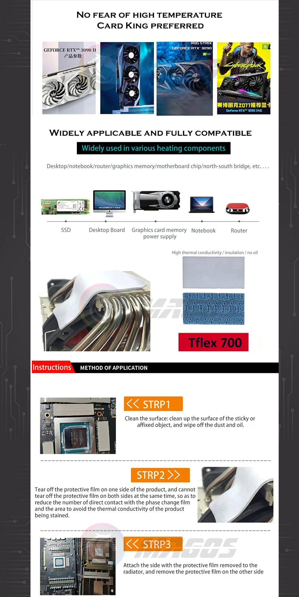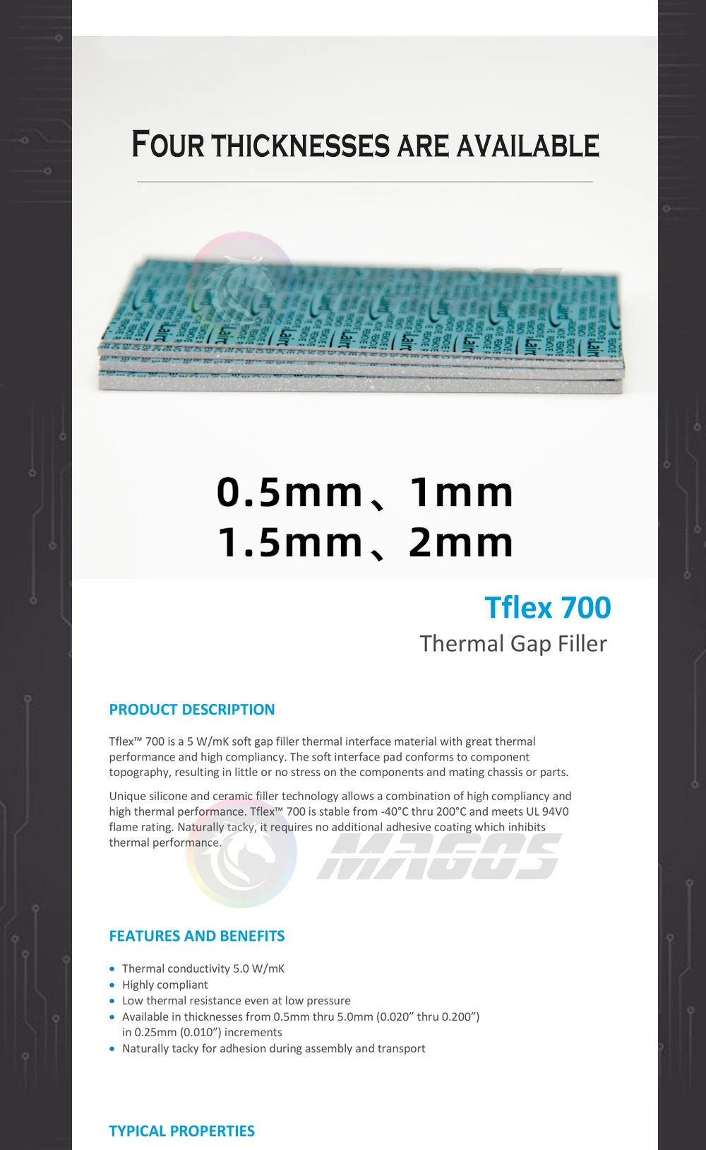 Comprar LAIRD-almohadilla térmica de silicona conductora de refrigeración, disipador de calor Tflex 700 5W/mK GPU CPU RAM SSD, 40x80mm/100x100mm, alta calidad