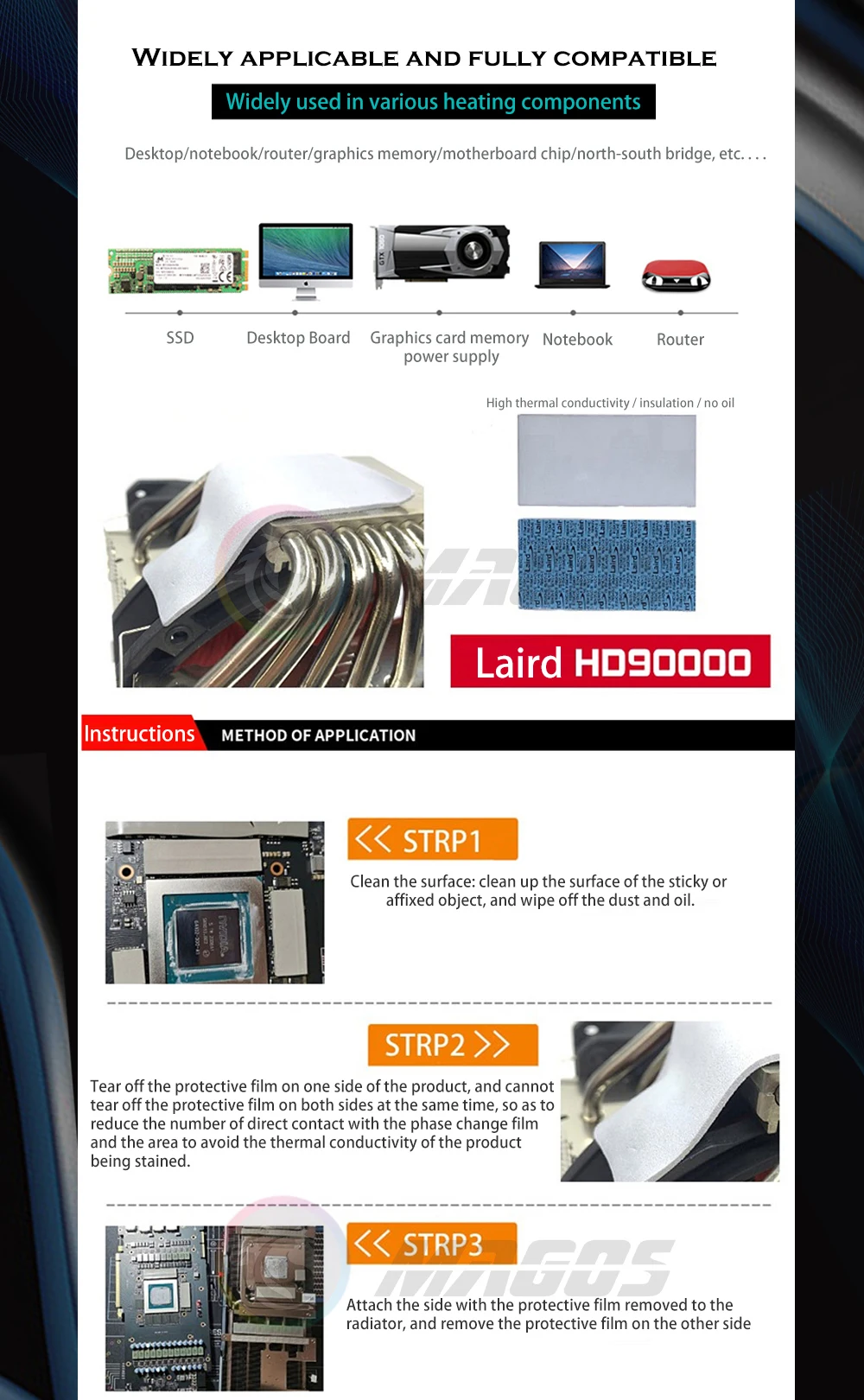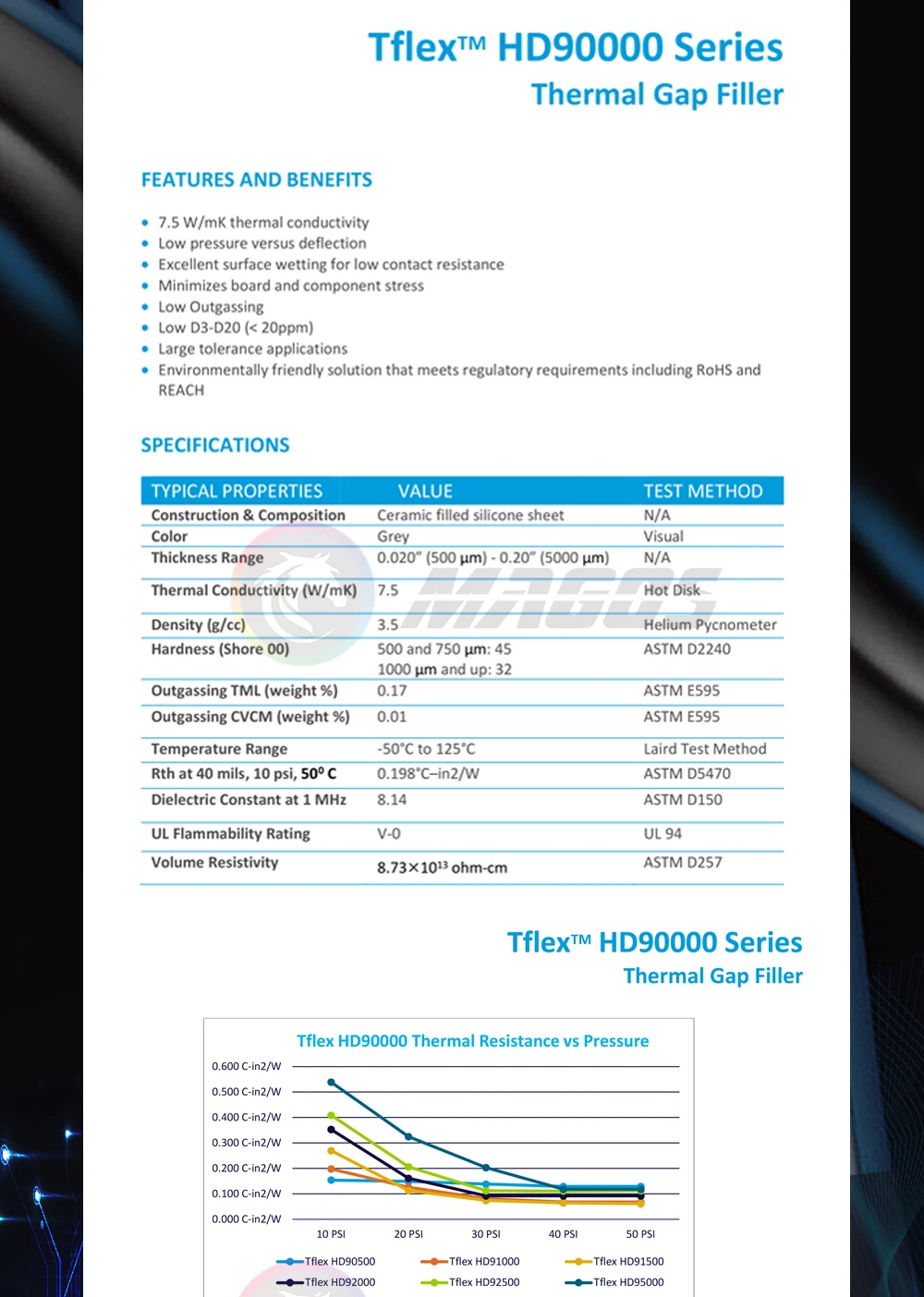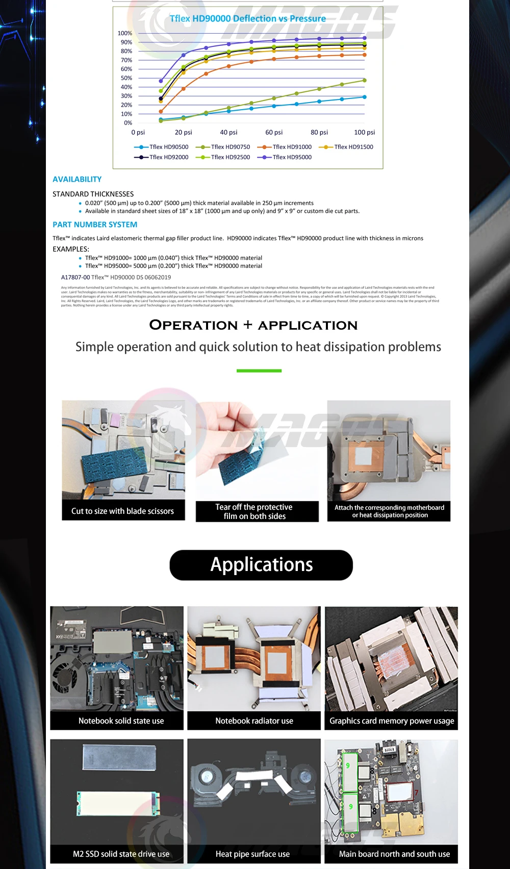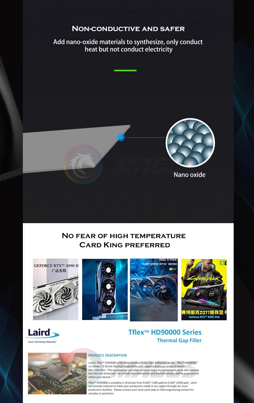 Almohadillas de silicona conductoras térmicas Laird Tflex HD90000 7,5 W/m.k M.2 SSD RTX 3080 3090 GPU junta de Grasa de silicona para refrigeración de memoria
