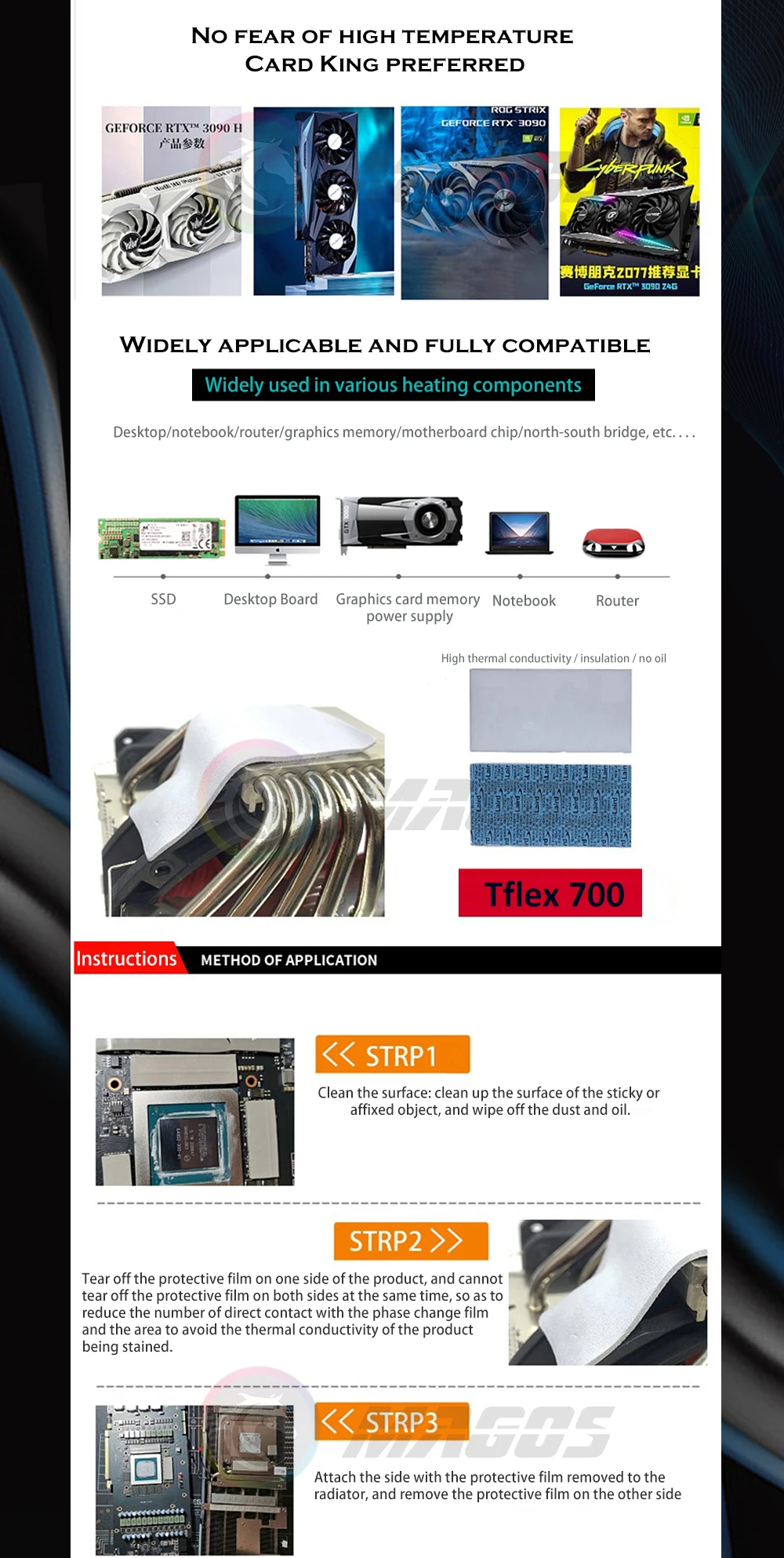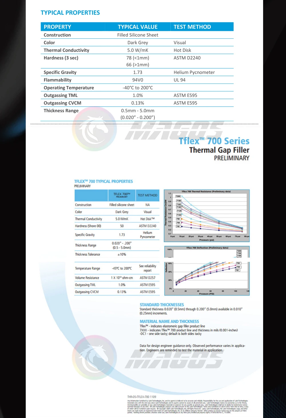 Laird TFLEX 700 Junta de grasa de silicona conductora térmica GPU VRAM M2 South Bridge Notebook Cooling Thermal Pad 5 W/m.k 0,5-2,0mm