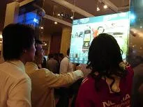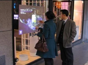 La película de lámina táctil interactiva es una película transparente sensible al tacto, fijada a la membrana en la parte posterior del vidrio o placa de acrílico transparente, los paneles de vidrio o cristal pueden transformar instantáneamente el tamaño de la pantalla táctil.