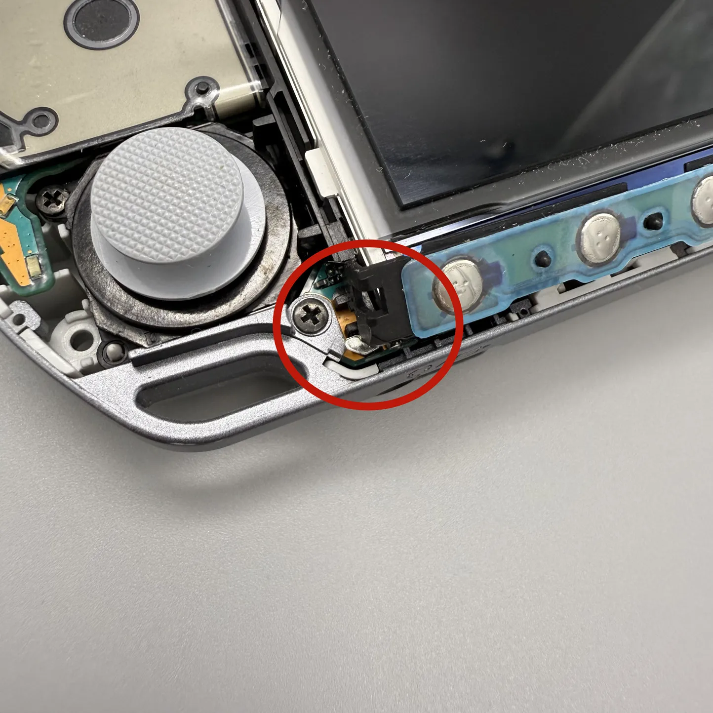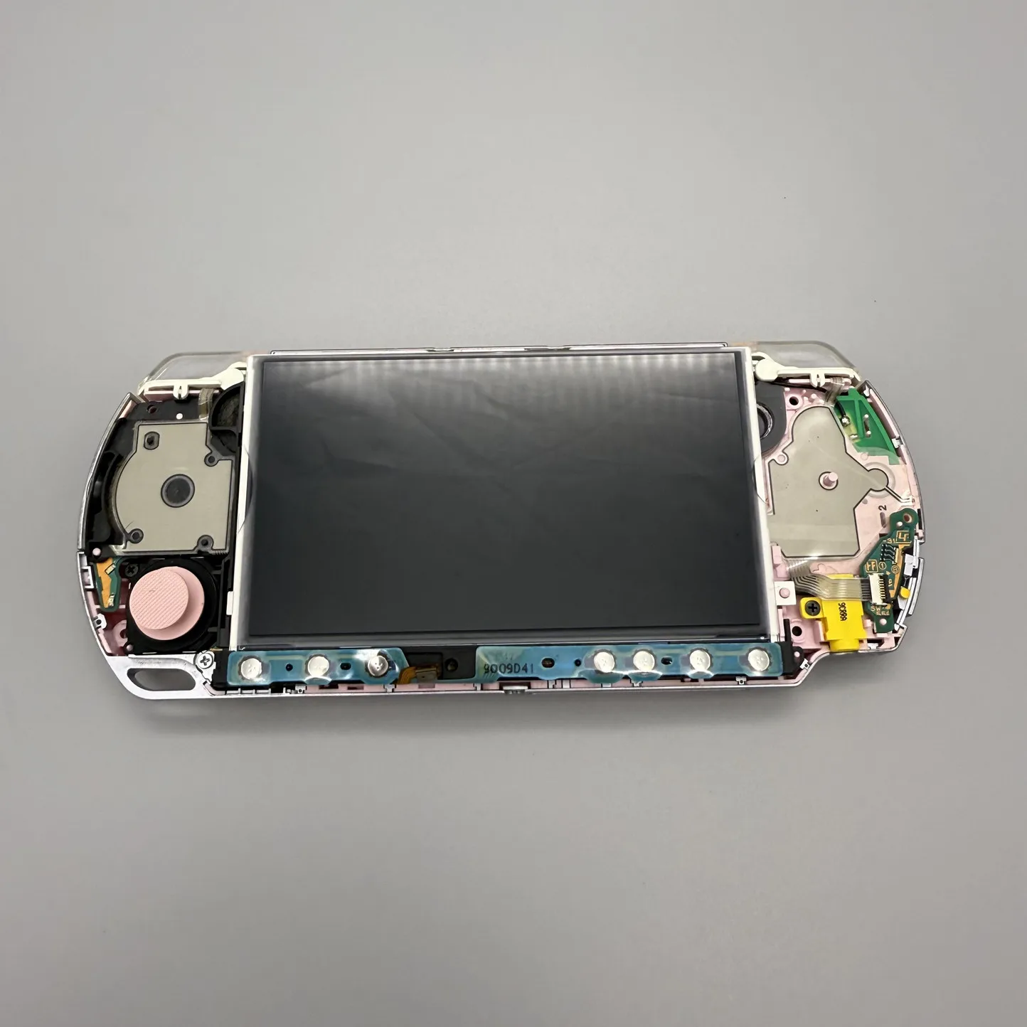 Instalación completada. Asegúrese de que los cables desechados estén envueltos con cinta aislante y que la parte metálica en la parte posterior de la pantalla LCD no entre en contacto con otros componentes electrónicos. Los cortocircuitos pueden provocar que el fusible de retroiluminación de la placa base PSP se queme. Reemplazar el fusible de retroiluminación requiere desmontar la placa base, alta dificultad de mantenimiento.