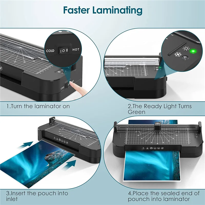 Máquina laminadora 4 en 1: nuestra laminadora maximiza su comodidad, también es perfecta para las necesidades de laminación preescolar, hogar, aula y oficina.