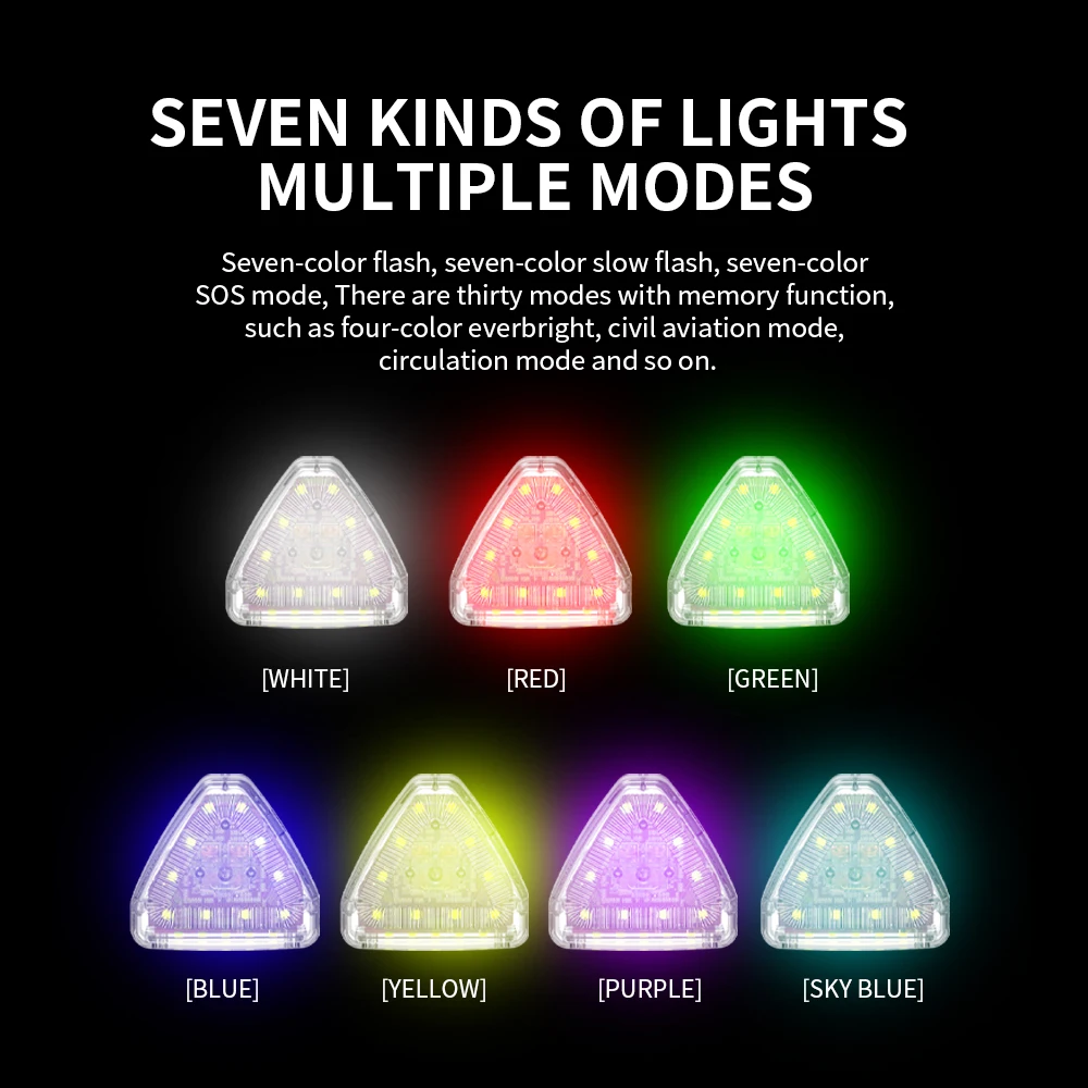 Luz de advertencia estroboscópica, luces estroboscópicas anticolisión recargables por USB, resistente al agua, 7 colores, LED de alto brillo, Control remoto inalámbrico para Dron, motocicleta, bicicleta