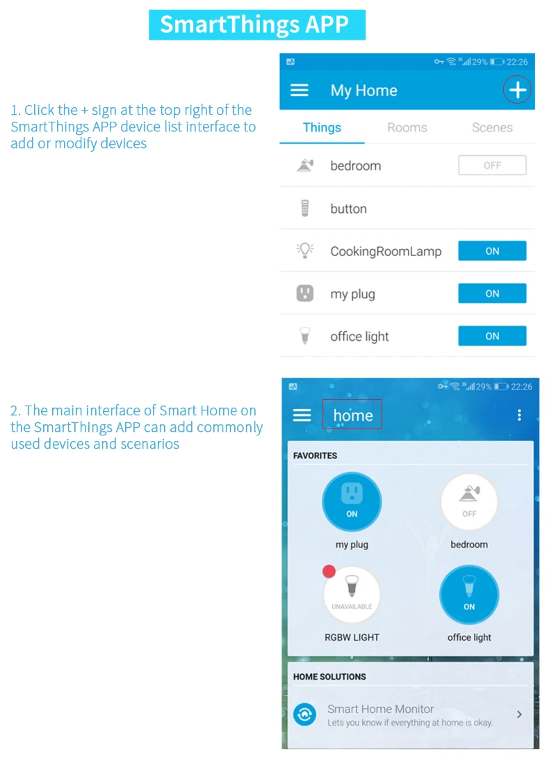 Nuestras bombillas LED inteligentes son compatibles con Alexa Echo / Home a través de SmartThings hub o Tuya Hub. -Funciona con la aplicación de control Tuya/SmartThings App.