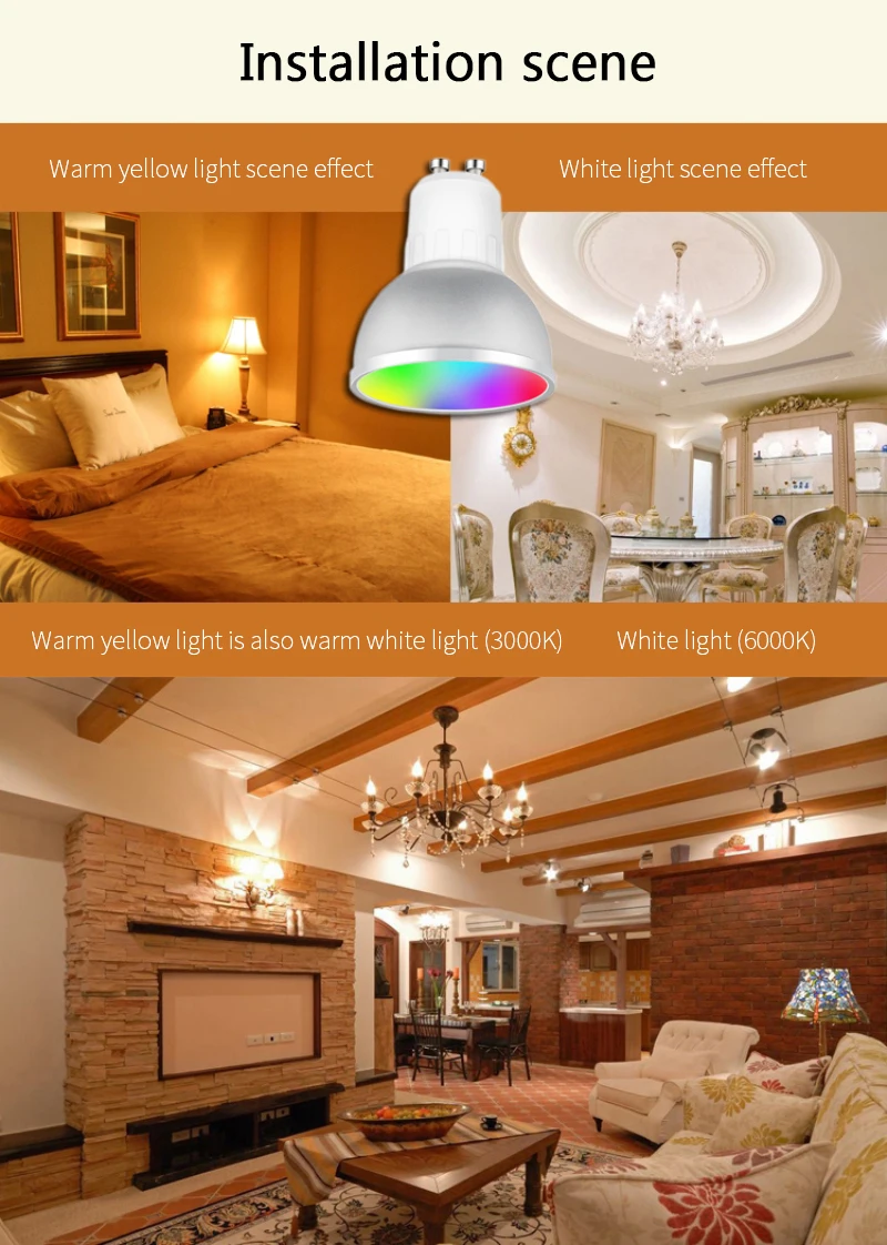 Color: luz blanca cálida, ajuste claro y oscuro, 16 millones de colores RGBCW a todo color ajustable, cambia fácilmente según su estado de ánimo. Cambia cualquier habitación por una pista de baile o crea un ambiente relajante y tranquilo. Como sala de estar, cocina, dormitorio, etc.