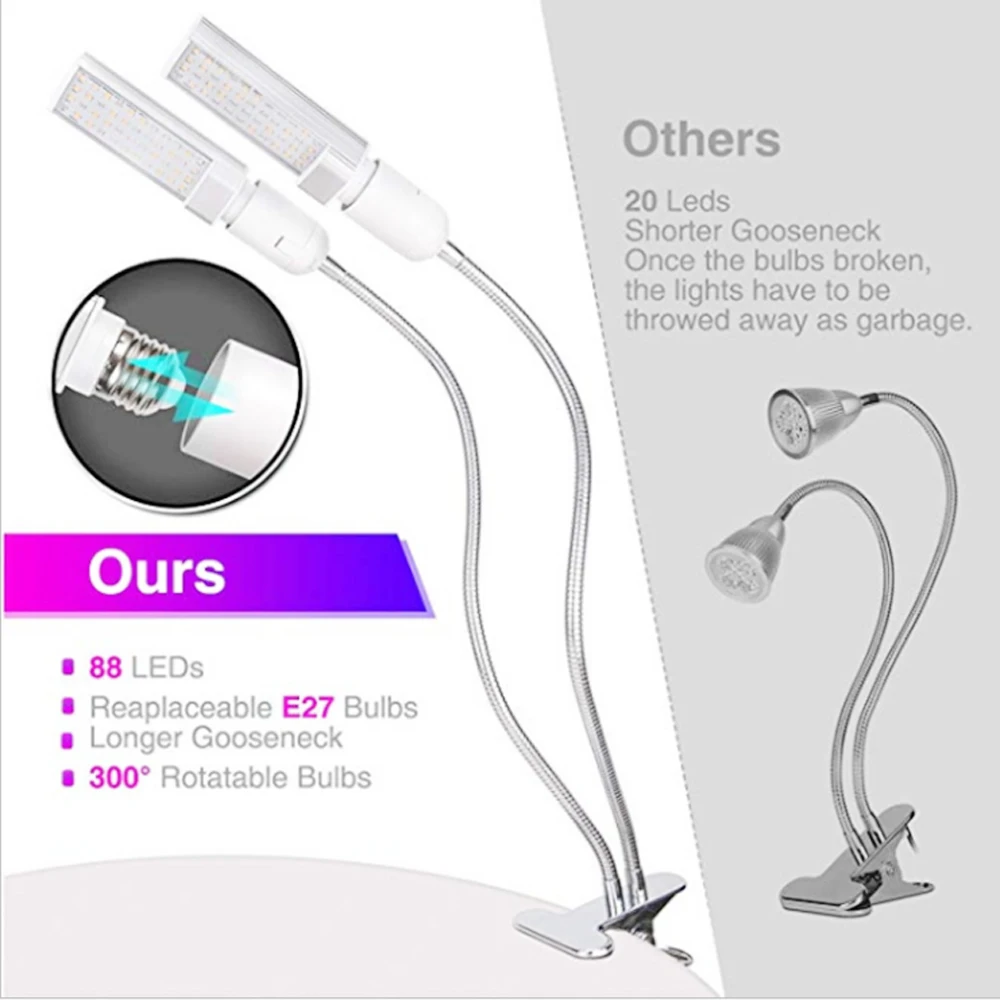 1 Uds 2X44leds regulable 5V espectro completo USB LED Grow Light blub y juego de portalámparas